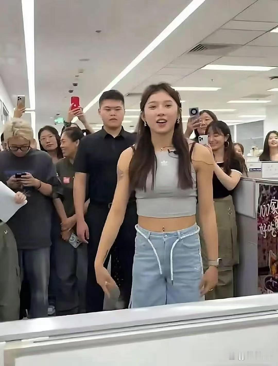 吴艳妮在成都穿着短裤大腿看起来很粗壮,表情自信又张扬