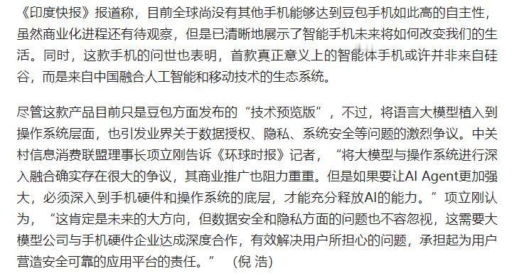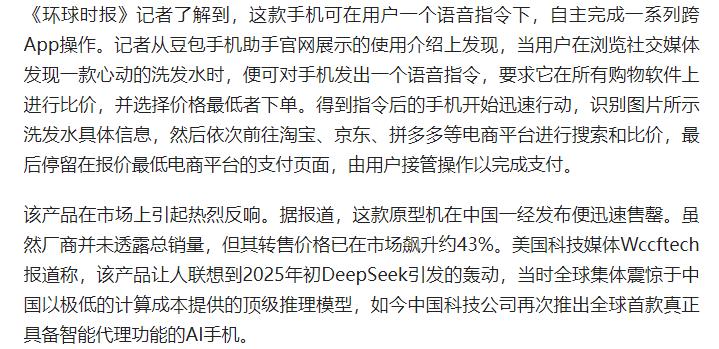 一款将大型语言模型深度融入操作系统的国产AI手机发布,引发外媒高度关注 原文来自:枢密院十号《外媒关注中国发布“全球首款AI手机”》