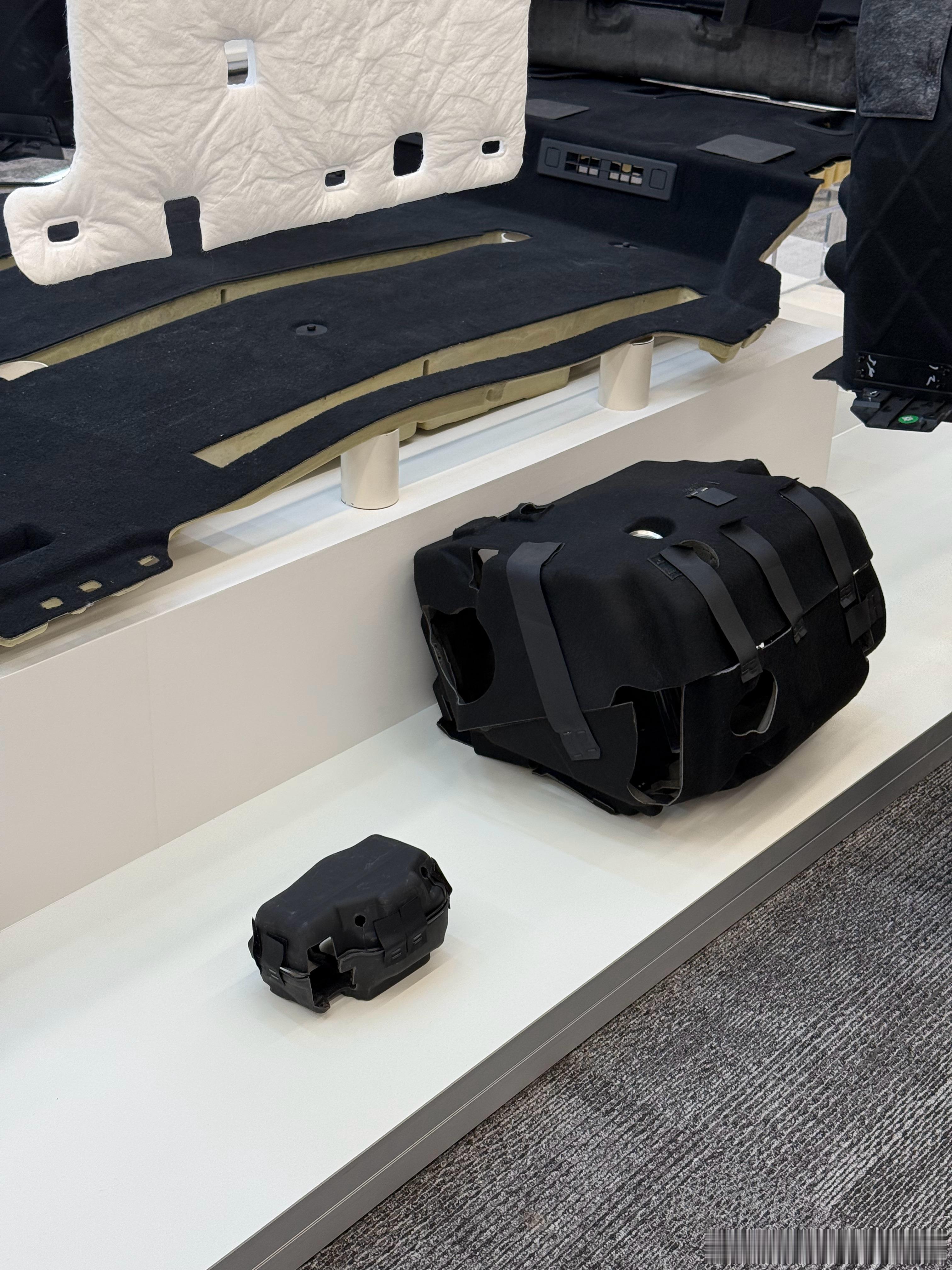 来看看理想Mega是如何优化NVH的,可以看到全车上下各种隔音材料是应有尽有。对于低中高频的噪音,都做了针对性处理。图3这两个单独的隔音包,大家猜猜是用在哪里的 理想材料研发成果大盘点