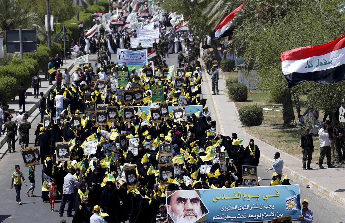2015年伊拉克首都巴格达的圣城日游行示威活动,支持巴勒斯坦,反对以色列。
