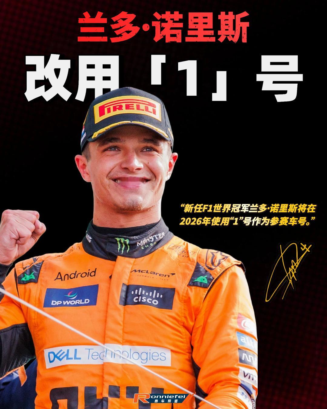 f1 诺里斯已敲定2026赛季车号,暂别“4”号,改用“1”号~👇诺里斯202