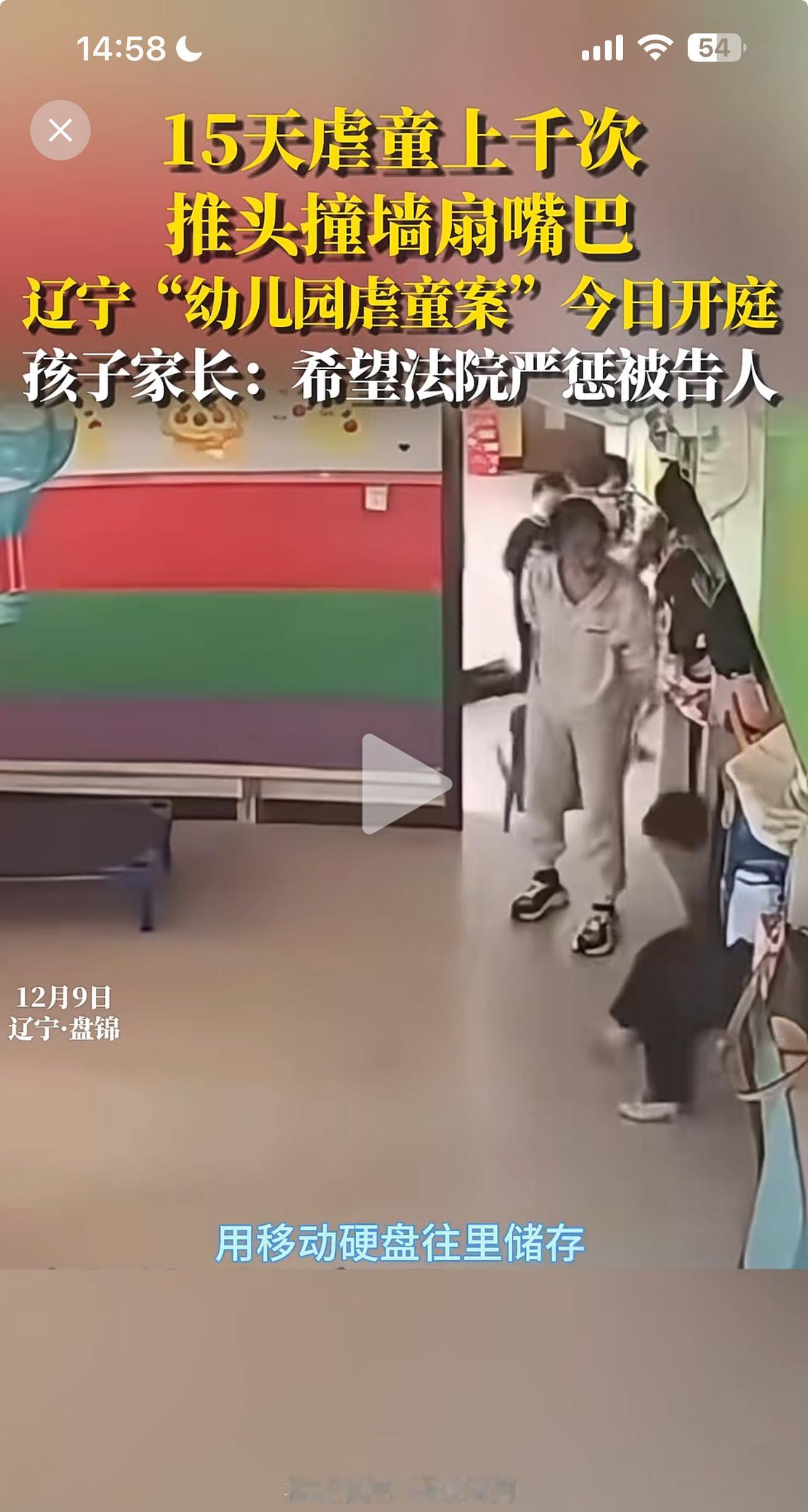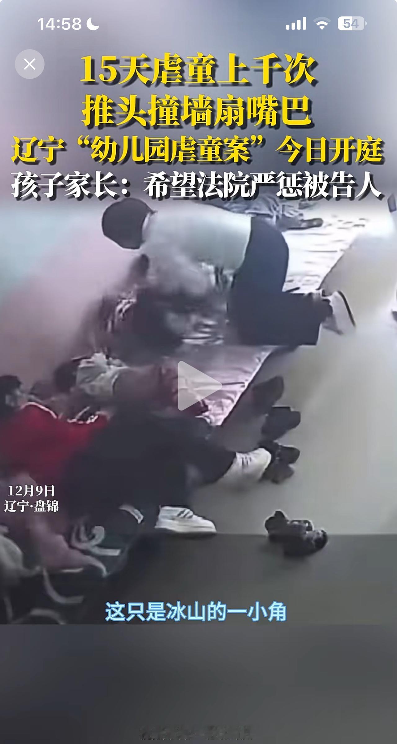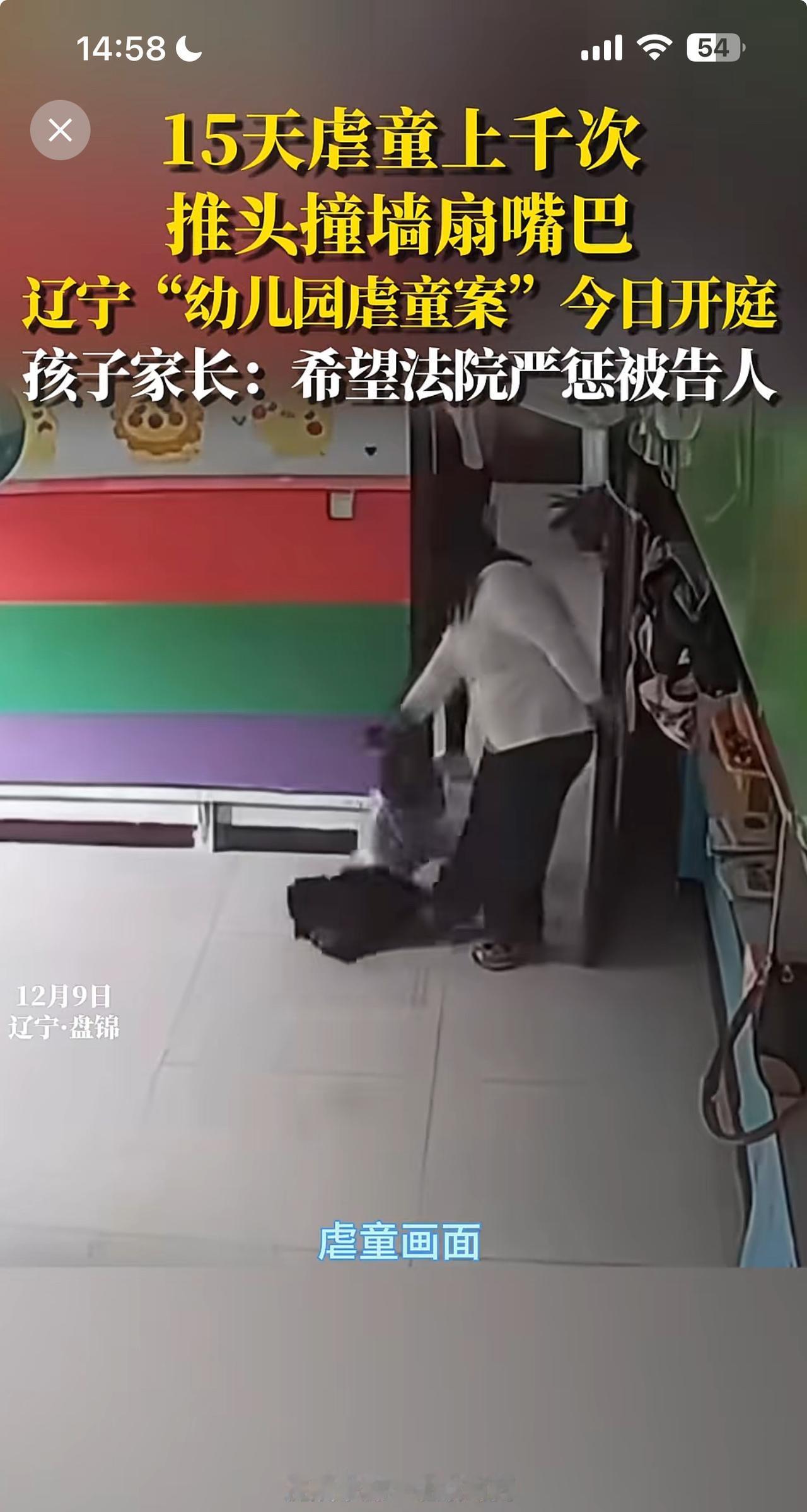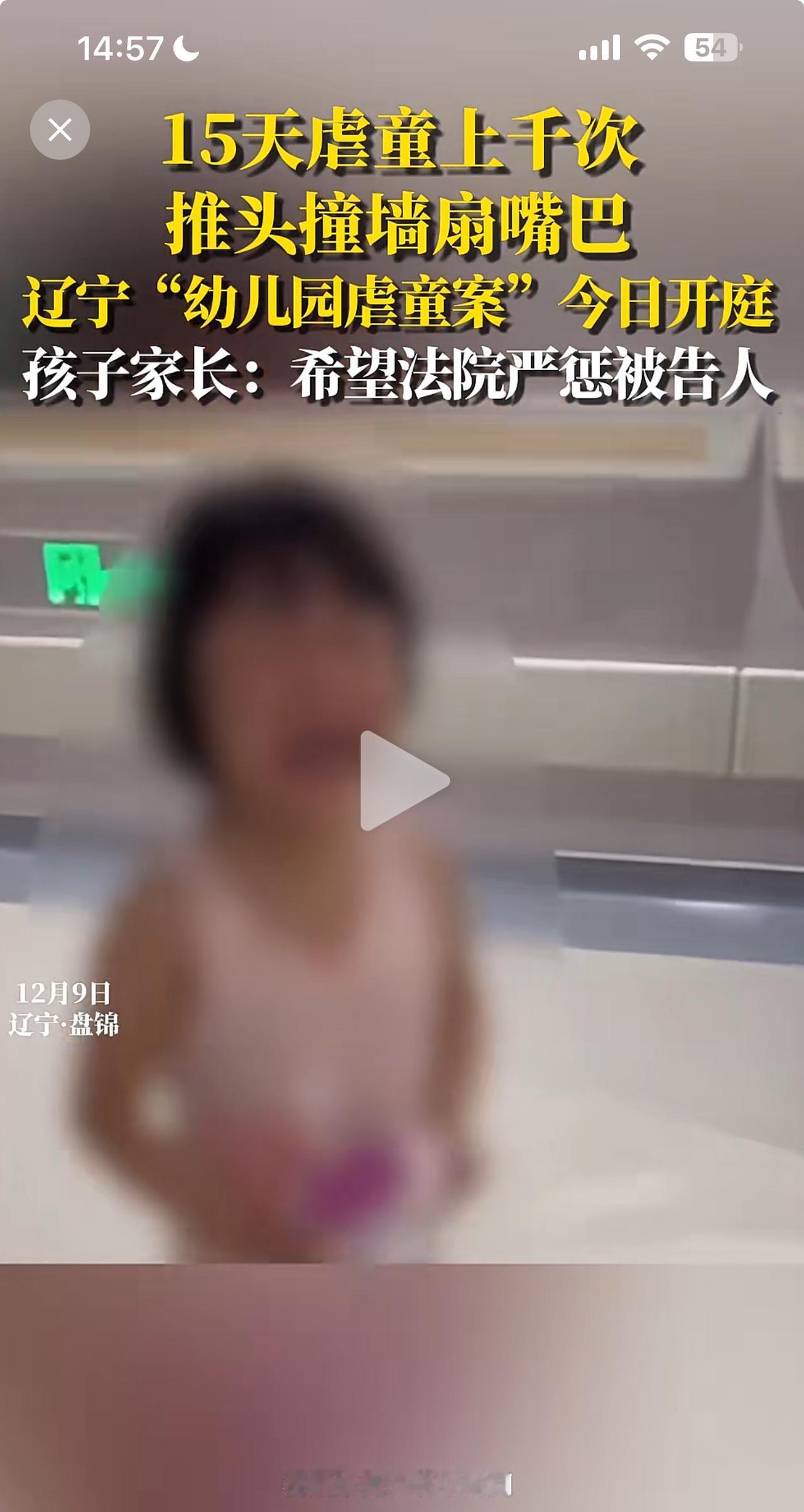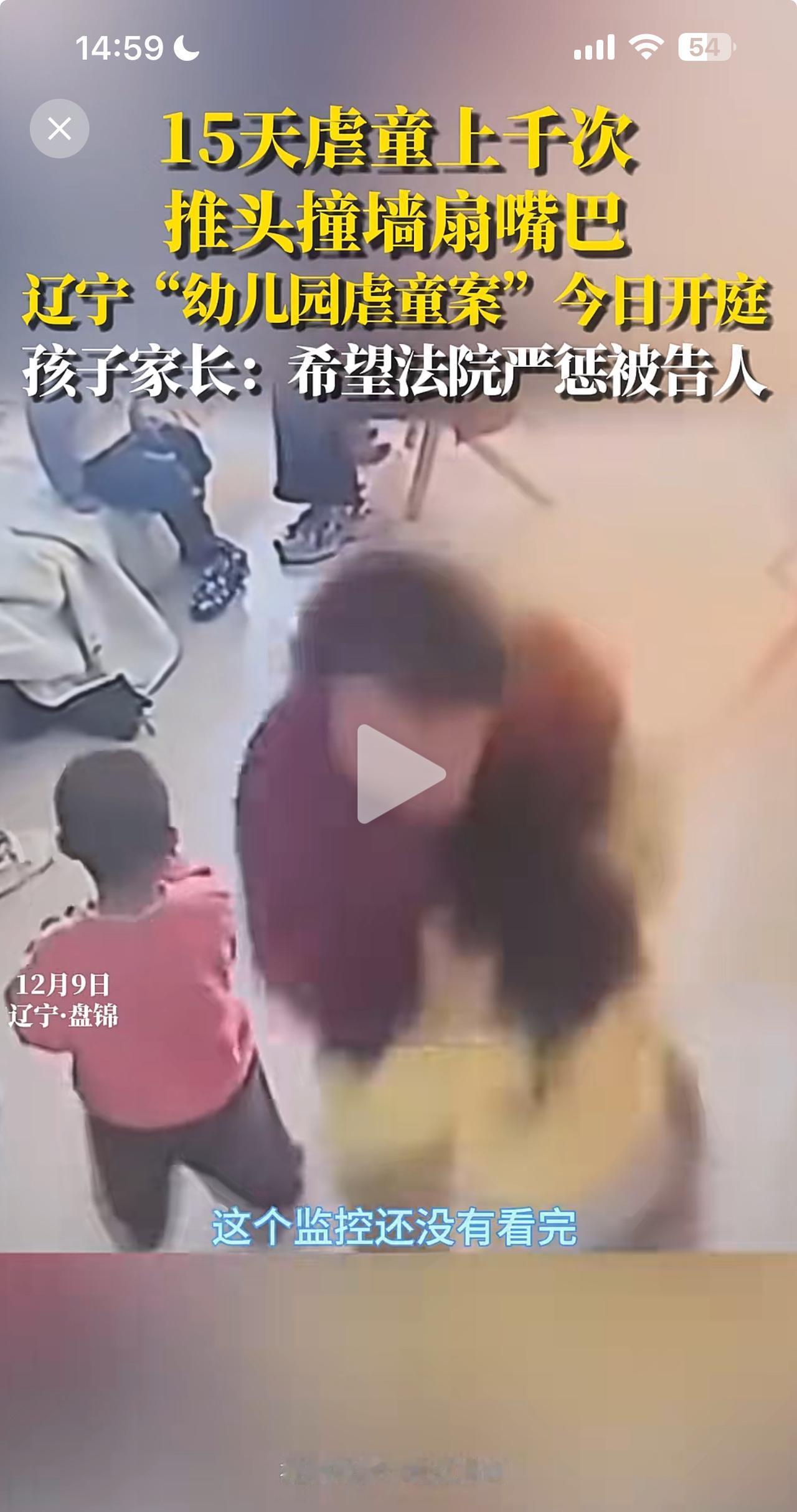 据监控视频显示,仅仅15天就发生虐待幼童上千次!这不是发生在后爹后妈家庭,也不是发生在人贩子的黑窝点里! 这是发生在辽宁省盘锦市盘山县羊圈子镇鹏程幼儿园!今天该案在盘锦市大洼区法院开庭。 这事是怎么曝光的呢?幼儿家长孟先生在今年3月偶然发现女儿身上有淤青,然后调取学校监控查看,才发现令人震惊的虐待视频! 据调查,该幼儿园参与虐待的老师高达10人!虐待方式有推头撞墙扇嘴巴。目前,仅有教师张某一人被以“虐待被监护、看护人罪”提起公诉。 这是幼儿园吗?简直就是魔窟!第一时间发现幼儿园虐童事件的孟先生孩子遭遇最惨,孩子出现精神行为异常,精神认知障碍,不能正常交流。 幼儿园本来是小朋友人生开始的地方,没想到这些孩子在起跑线上就遭了噩梦。 这么恶劣的案件却只有一人被提起公诉,实在让人难以理解!所有参与人员应该重处! 为了防止这样的事情发生,应该成立家委会定期到学校进行监督检查。你们认为呢?