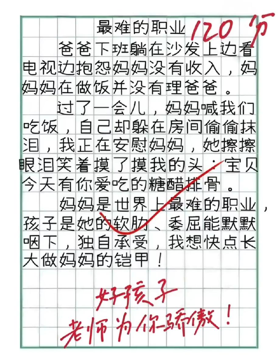 这篇“最难的职业”作文火了!孩子想做妈妈的铠甲,评论区全是泪目