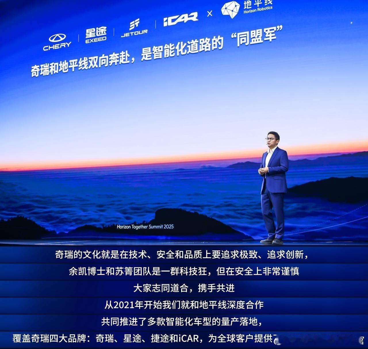 大家应该都听过地平线余凯带奇瑞尹同跃试驾的故事: 余凯约尹同跃试驾他们的系统,尹同跃现场怕被余凯「套路」,现场要求更改路线。今天奇瑞执行副总裁高新华分享了双方合作的另一个故事:在奇瑞第一台车下线纪念日的当天,高新华博士与余凯博士在上海闹市区亲身体验 HSD,随意规划路线,体验效果超出预期。当时高新华博士和余凯博士就一拍即合,要在奇瑞首发 HSD 和征程 6P!双方组建千人团队驻扎芜湖,吃了无数的奇瑞大包子,历时 15 个月攻坚,最终实现量产落地。星途 ET5 是交出来的第一个 baby,未来还将推广到奇瑞旗下更多车型。而且双方的合作不止征程 6P,从征程 6B 到征程 6P,覆盖了从入门到高端的全维需求。期待后续更多合作车型的落地。2025地平线技术生态大会大v聊车