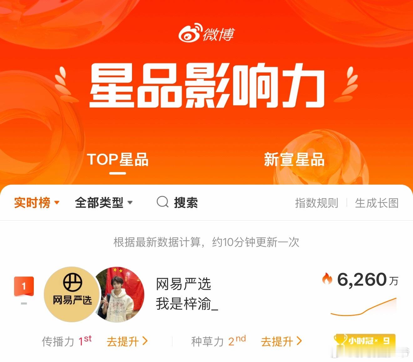 星品影响力梓渝Top星品第一耶,各位继续冲!让我看看YUNI们的实力!!!戳:星品影响力新宣星品