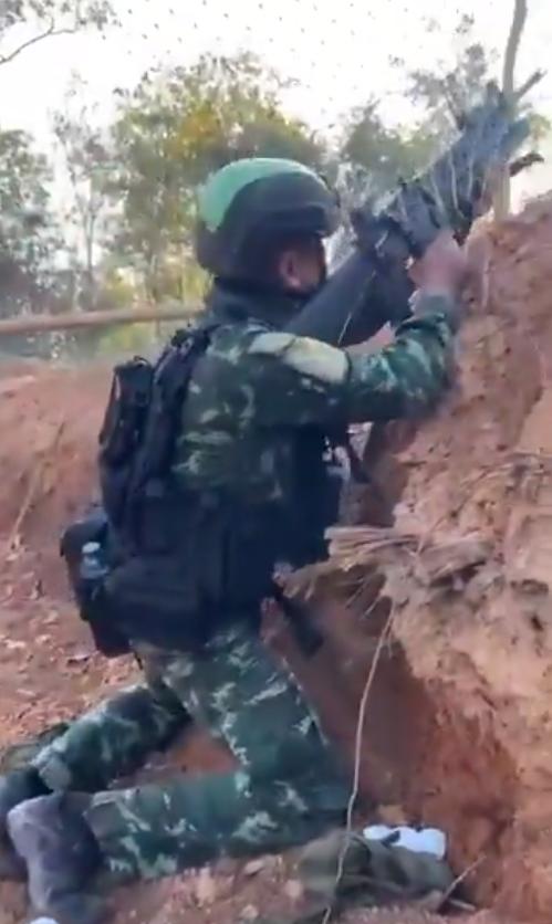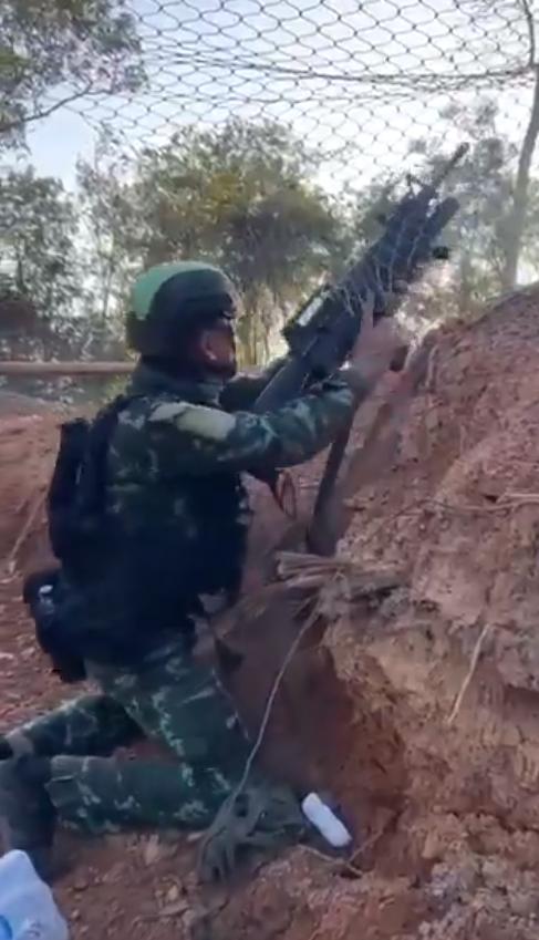 泰国皇家陆军士兵拍摄的视频显示,在今天(2025年12月8日)泰柬边境的进攻行动中,一名泰国皇家陆军掷弹兵使用安装在M16A4突击步枪上的M203榴弹发射器提供间接火力支援。