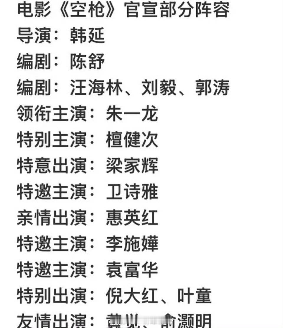 看得出来为番位绞尽脑汁🤣电影空枪官宣部分阵容