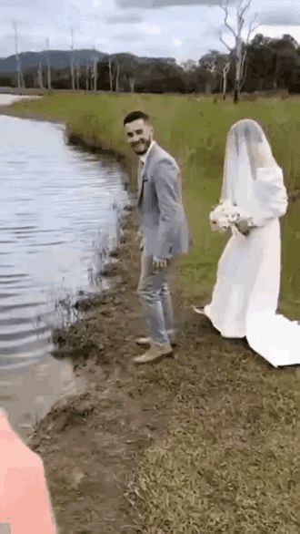 这也太吓人了吧,新郎突然被鳄鱼咬住了,真是太可怕了,大家在河边一定要小心哦