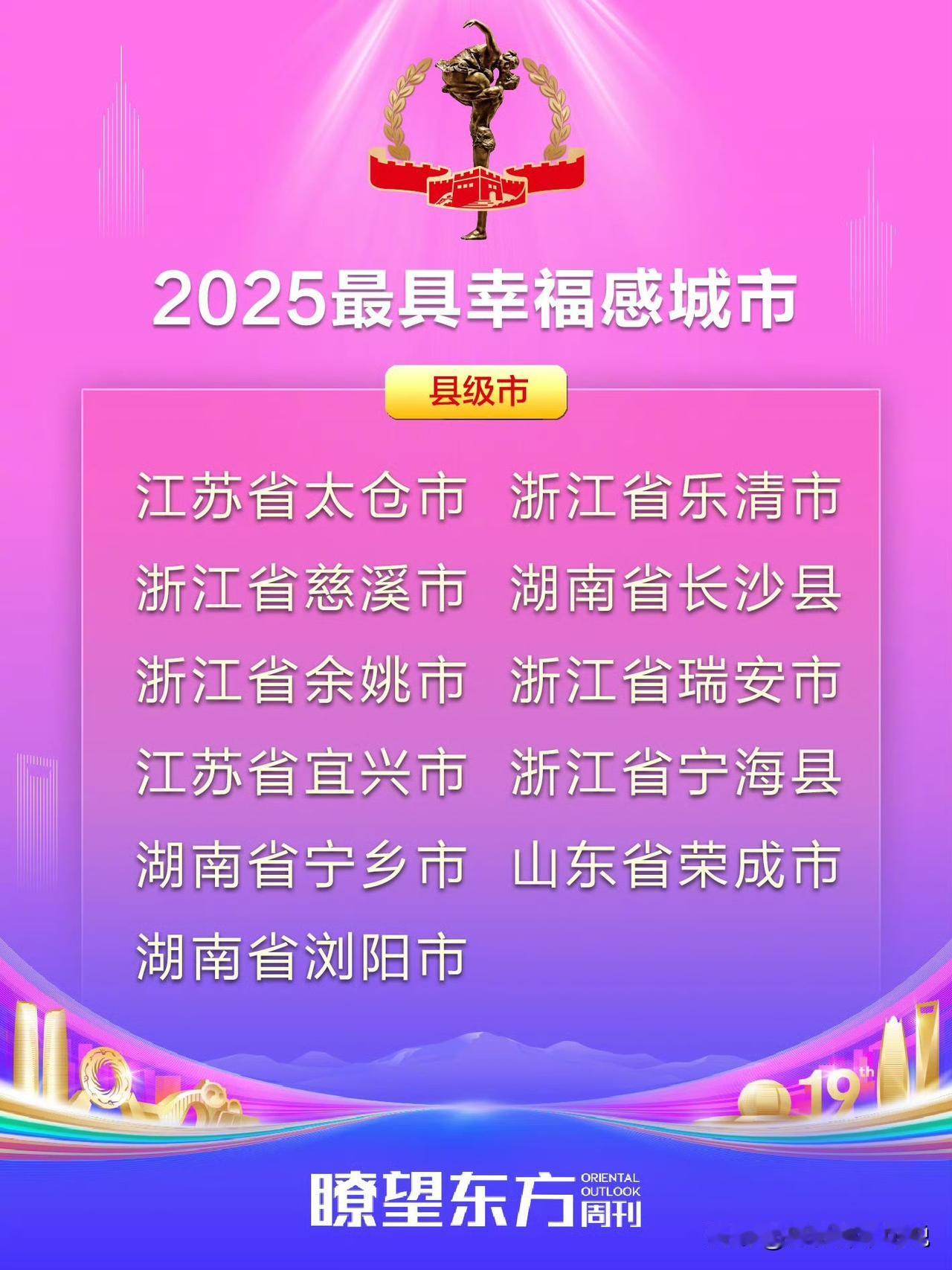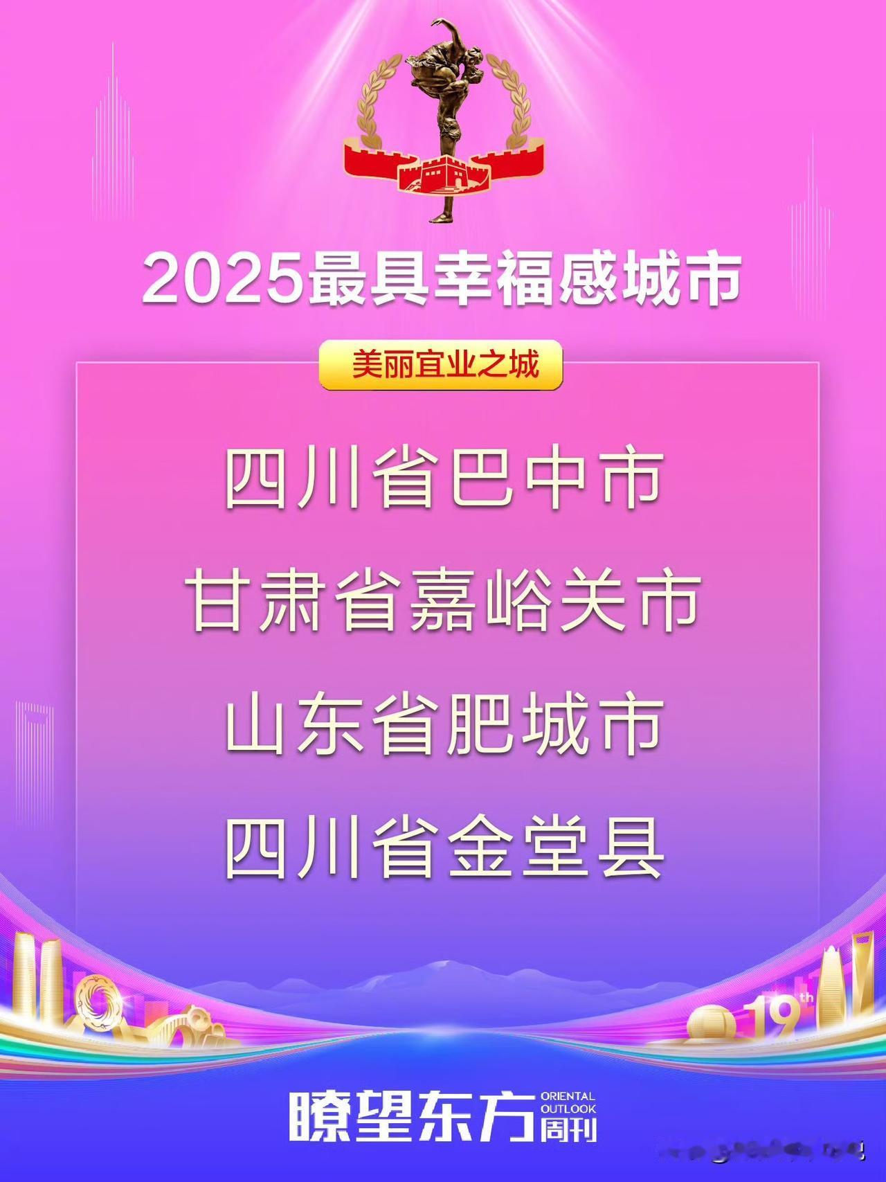 今年最具幸福感城市榜单揭晓,四川和浙江成为了最大赢家,其中几乎所有分类榜单都有四川城市赫然在列。比如省会及计划单列市中有成都、地级市中宜宾和攀枝花占两位、城区中成都温江区、双流区也在其中,美丽宜业之城中四川巴中和金堂占了2/4。该榜单是由《瞭望东方周刊》评选,已经连续举办了19年。从其榜单来看浙江和四川几乎旗鼓相当互有胜负,尤其浙江更为难得,不但经济发达生活富足,而且幸福感还那么足,这是让其他很多地方羡慕的地方!看来上有天堂下有苏杭和天府之国真不是白叫的,古人诚不欺我欺啊!冬日生活打卡季