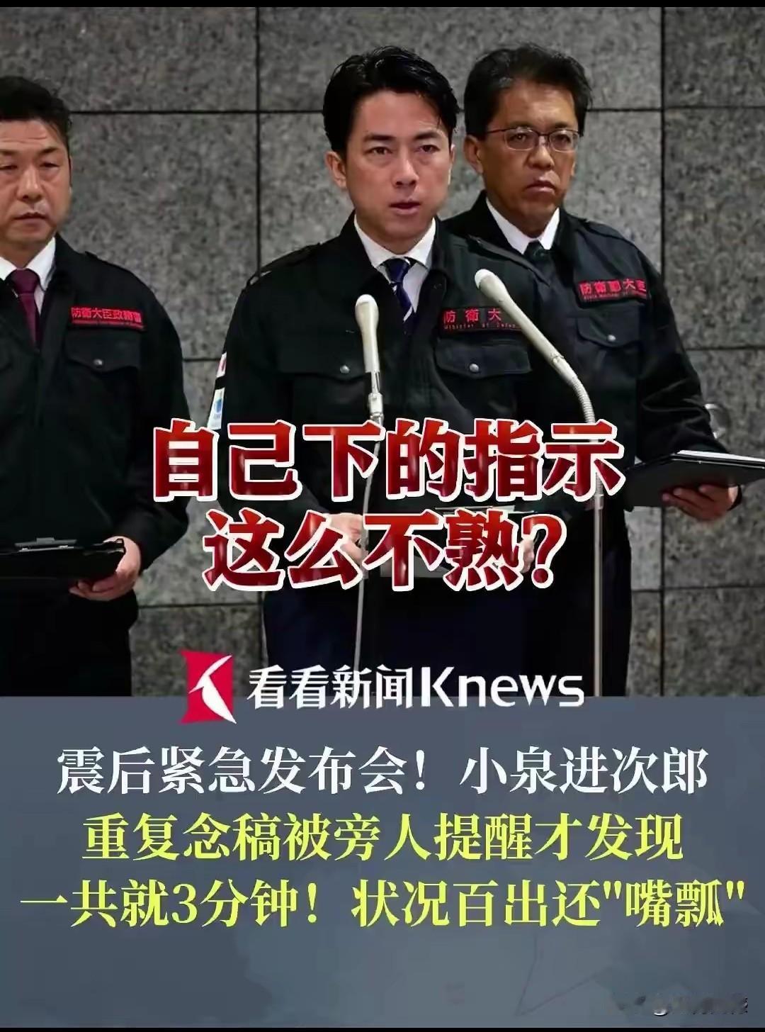 日本发生地震,高市也慌了,小泉也慌了,高市慌的一路小跑,小泉慌的重复念稿,这说明这两个人在关键时刻,心气都不够稳,严格一点说,这都是不成熟的表现,作为这个层次的人物,应该做到泰山崩于前而临危不惧,黄河决于后而处变不惊,从这件事情上看,他们显得还很嫩!