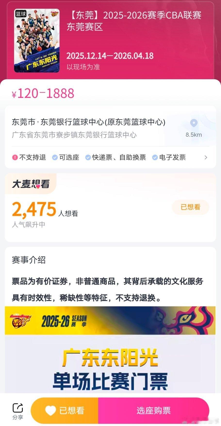 倒计时5天,广东男篮新赛季门票上线啦,揭幕战vs南京同曦,一起来主场为球队加油!