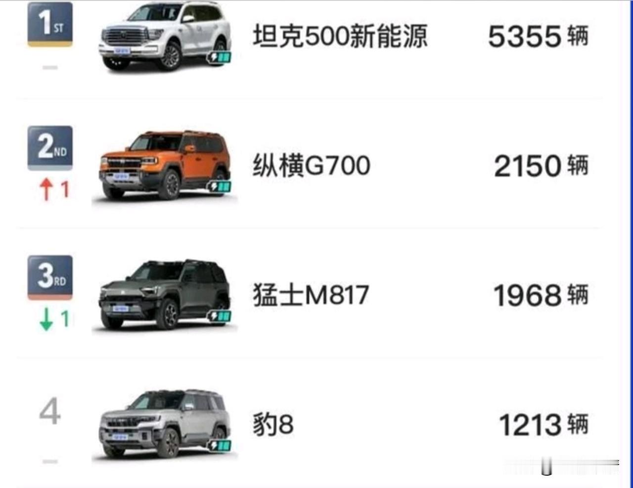 奇瑞纵横G700这销量算是初步成功了! 奇瑞纵横G700算是今年非常重磅的新能源硬派越野新车,也是奇瑞冲击高端的代表车型,首个完整月交出了4232辆的成绩,还算不错,初步成功了!