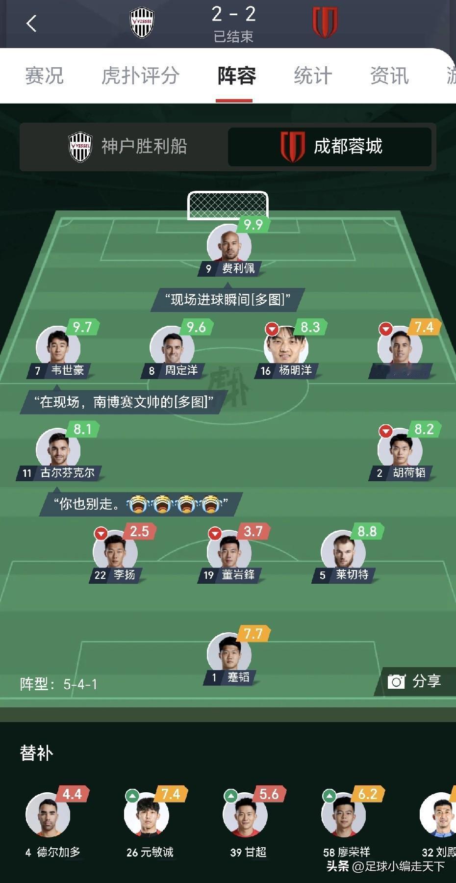 说句实话,成都踢亚冠真是用心了!这场2:2打出了中国人的精气神!要不是这个李扬还有2次门柱,蓉城本来是可以全取三分的。 话说这个李扬确实打不了高端局,菜就算了,拖累全队,还不是一两次了,我记得打蔚山现代也是他的失误导致丢球。 现在的成都蓉城是典型的攻强守弱,这防守,感觉对面一发力就不行,还自己失误犯错。联赛最后几场也这样,痛失好局。冬窗还是得补强阵容。 建议中超还是彻底开放外援吧,不开放外援就是让这些国内球员拖后腿。