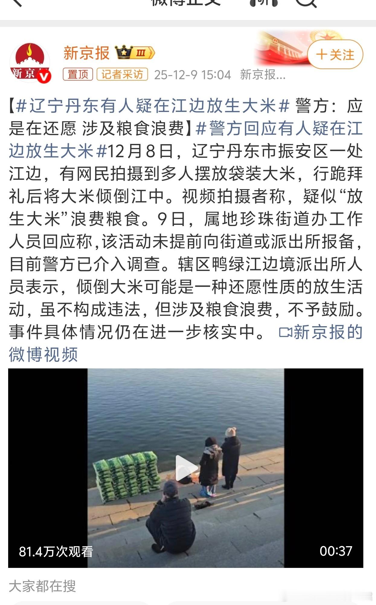 辽宁丹东有人疑在江边放生大米典型吃饱了撑的