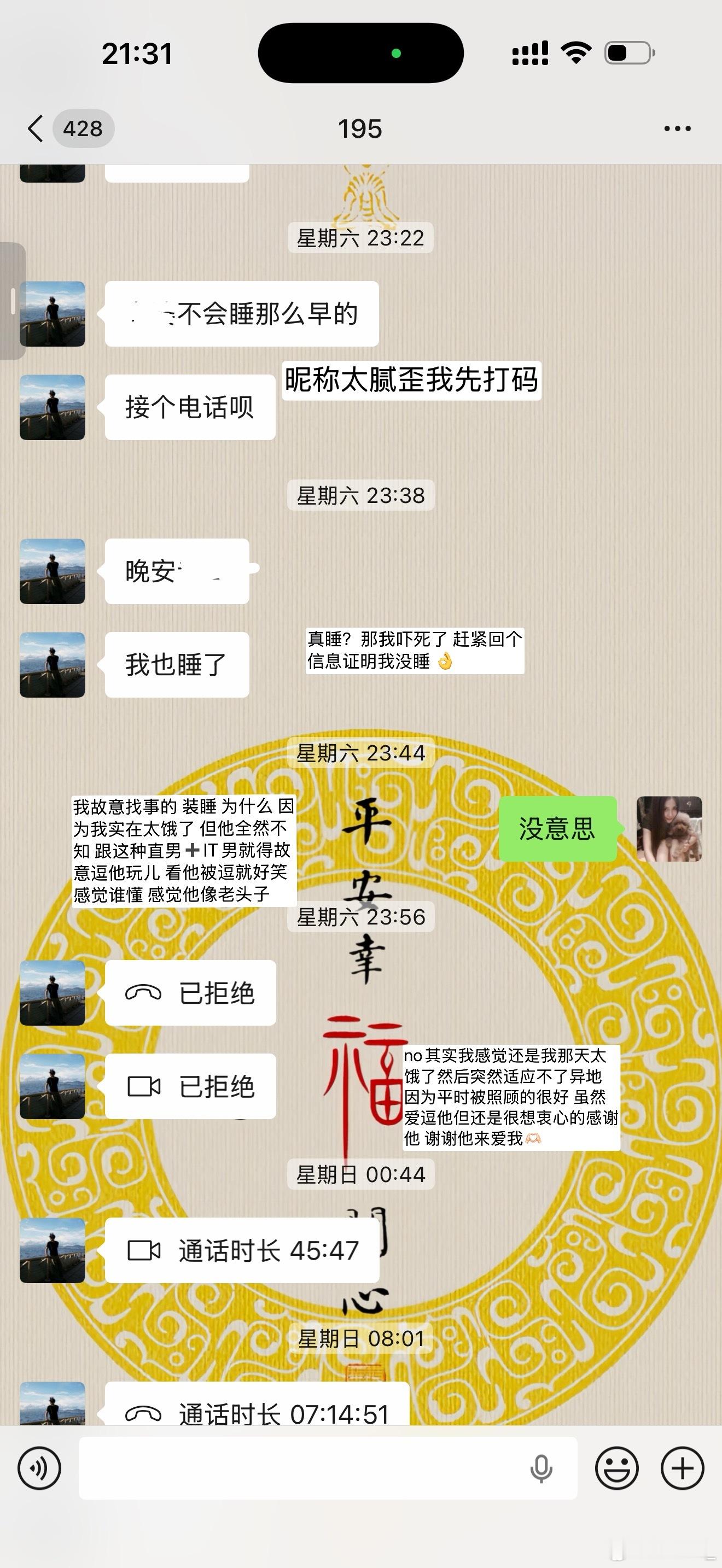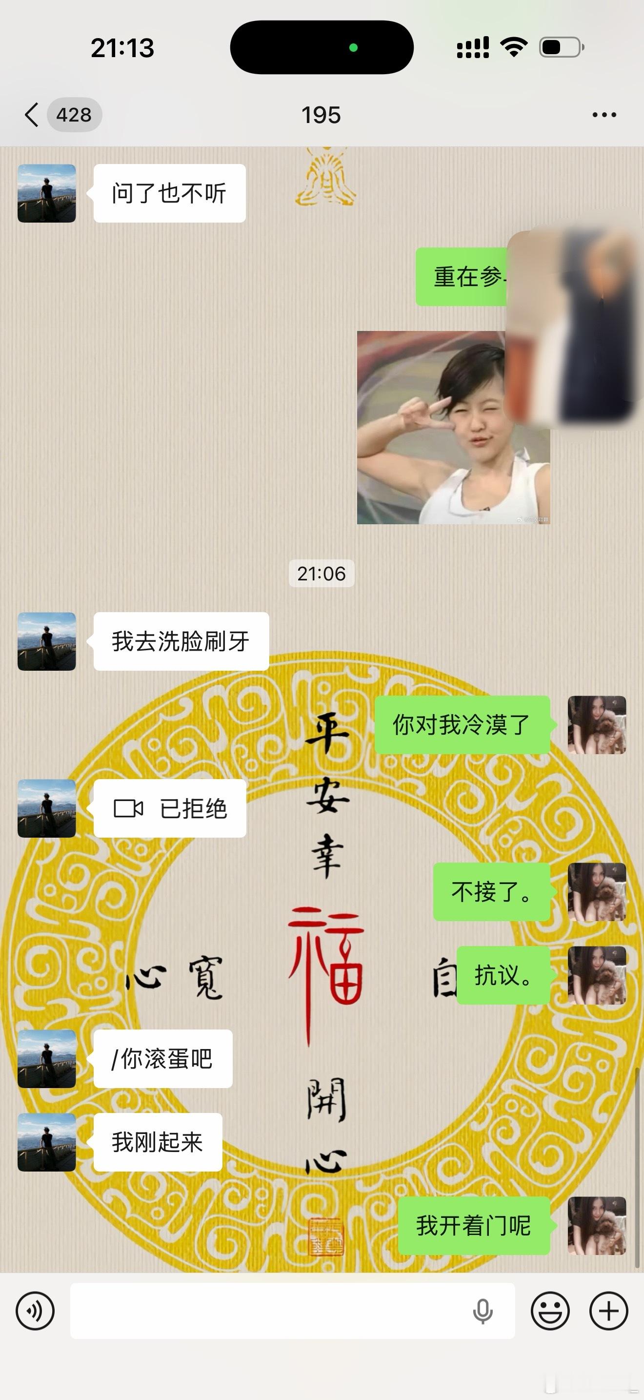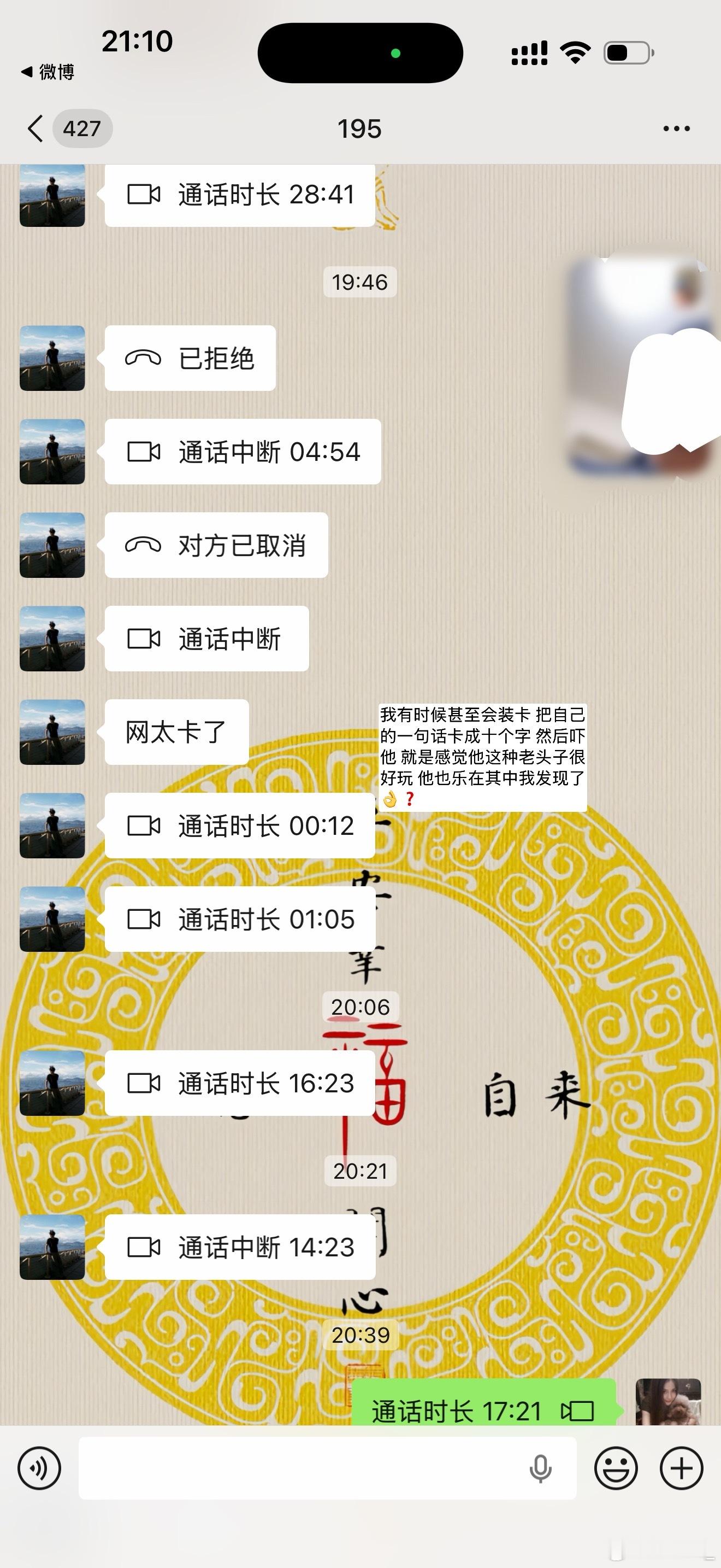 195上班去了 我俩已异地一个礼拜 他的工作并不是可以摸鱼的工作 所以我俩在他下班后就会报复性视频 不视频的时候干嘛 逗他玩儿(老干部经常被逗开心 我俩诠释一句话 啥锅配啥盖