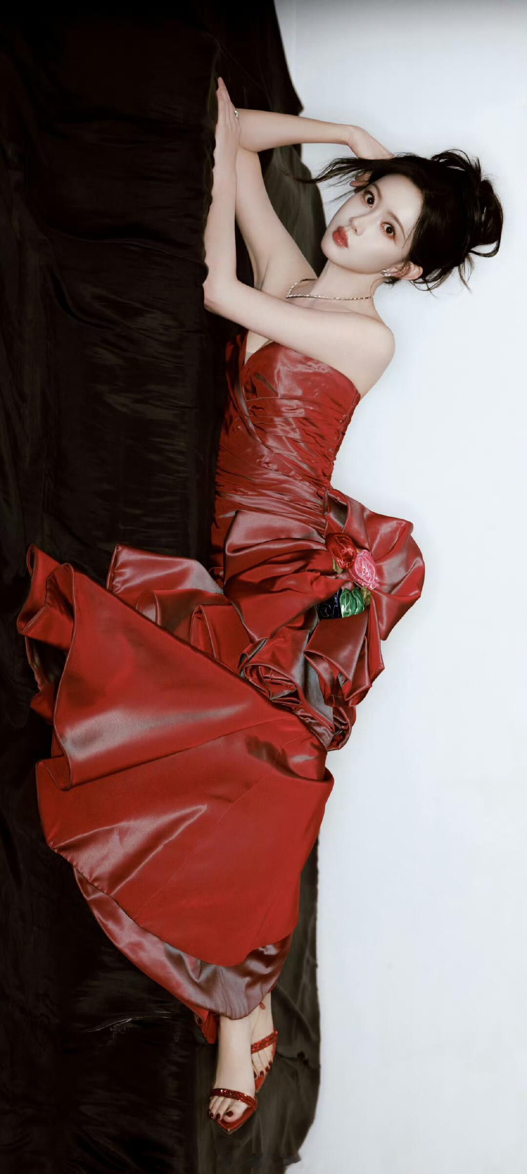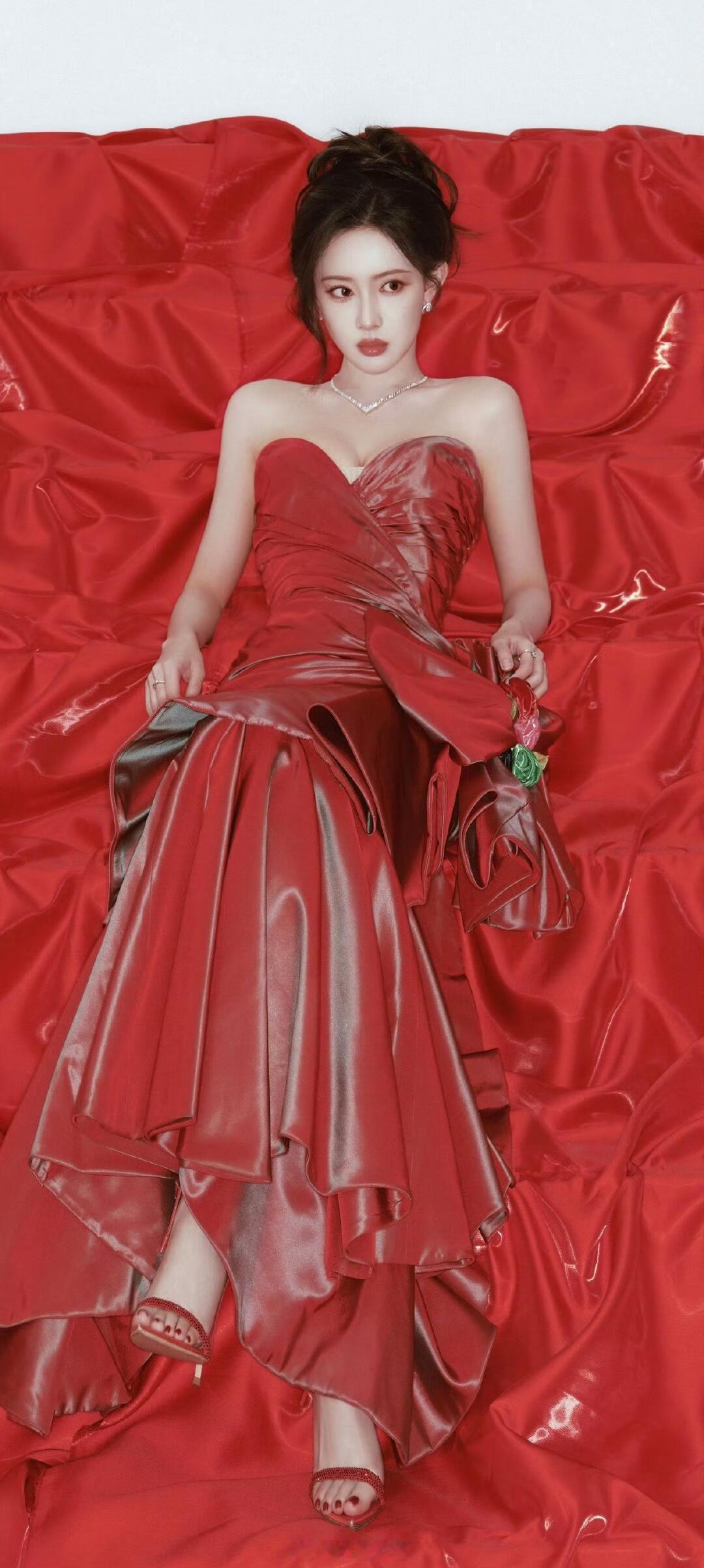 孟子义 尖叫之夜抹胸红裙穿搭全屏壁纸,身材好好孟