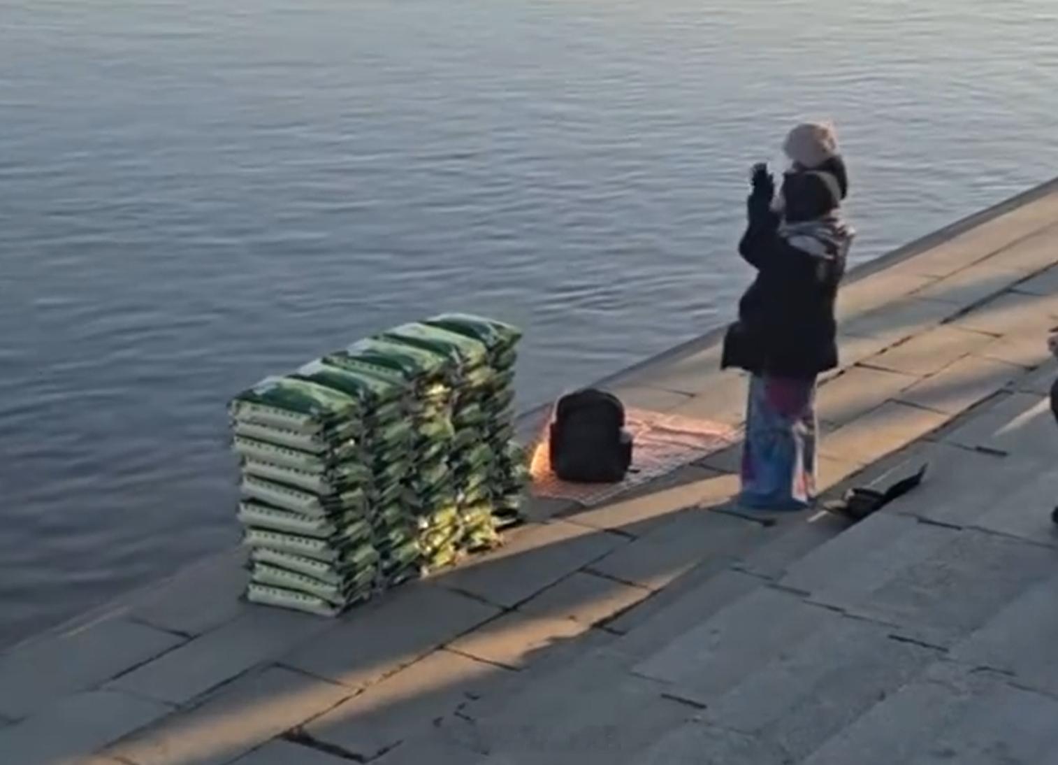 辽宁丹东有人疑在江边放生大米这还是中文吗?放生大米
