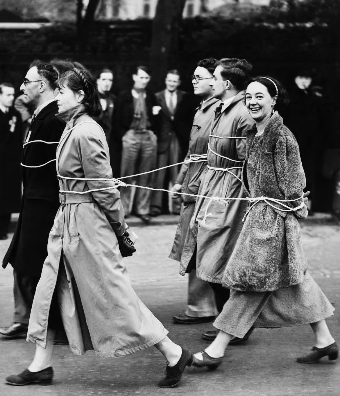 1933年伦敦老照片,一场争取8小时工作制的五一国际劳动节游行,被捕的女性对着镜头冁然而笑。