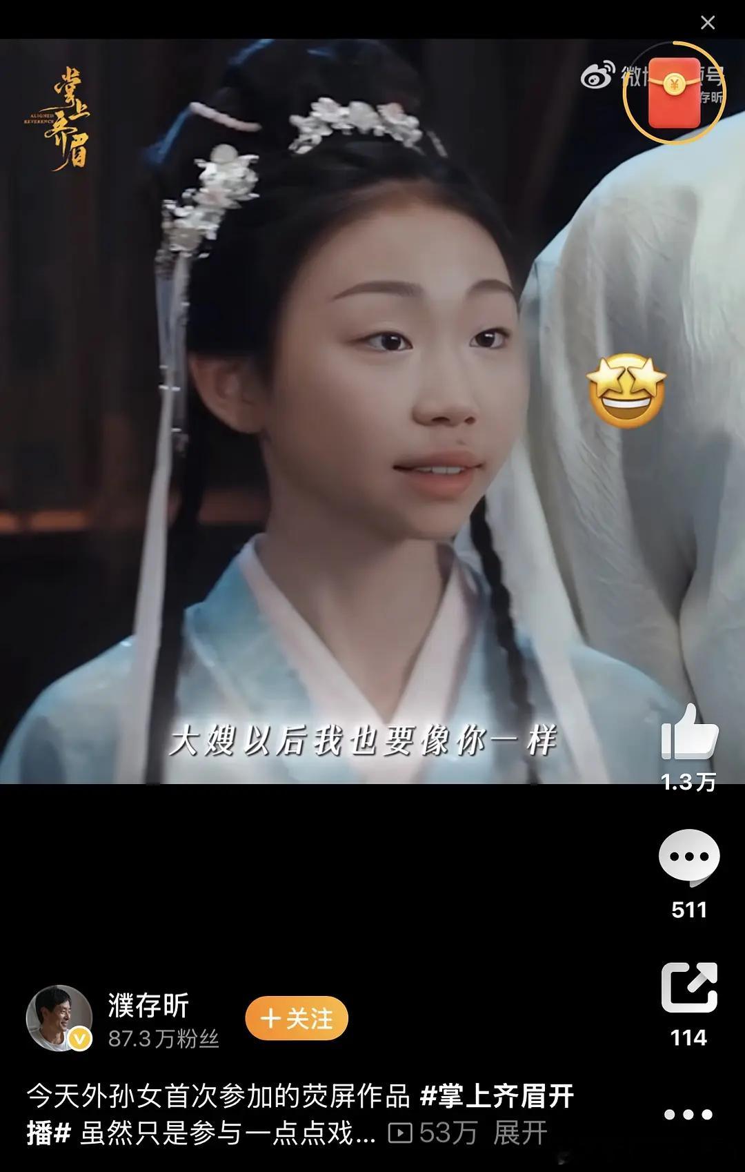 老艺人濮存昕的外孙女出道了,评论区听取“哇”声一片……原因:这位濮存昕家的小