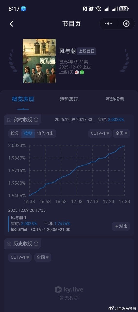 风与潮热度风与潮交出满分答卷!开播第一天热度就焊在高位,好评刷到手软,澳门那段燃
