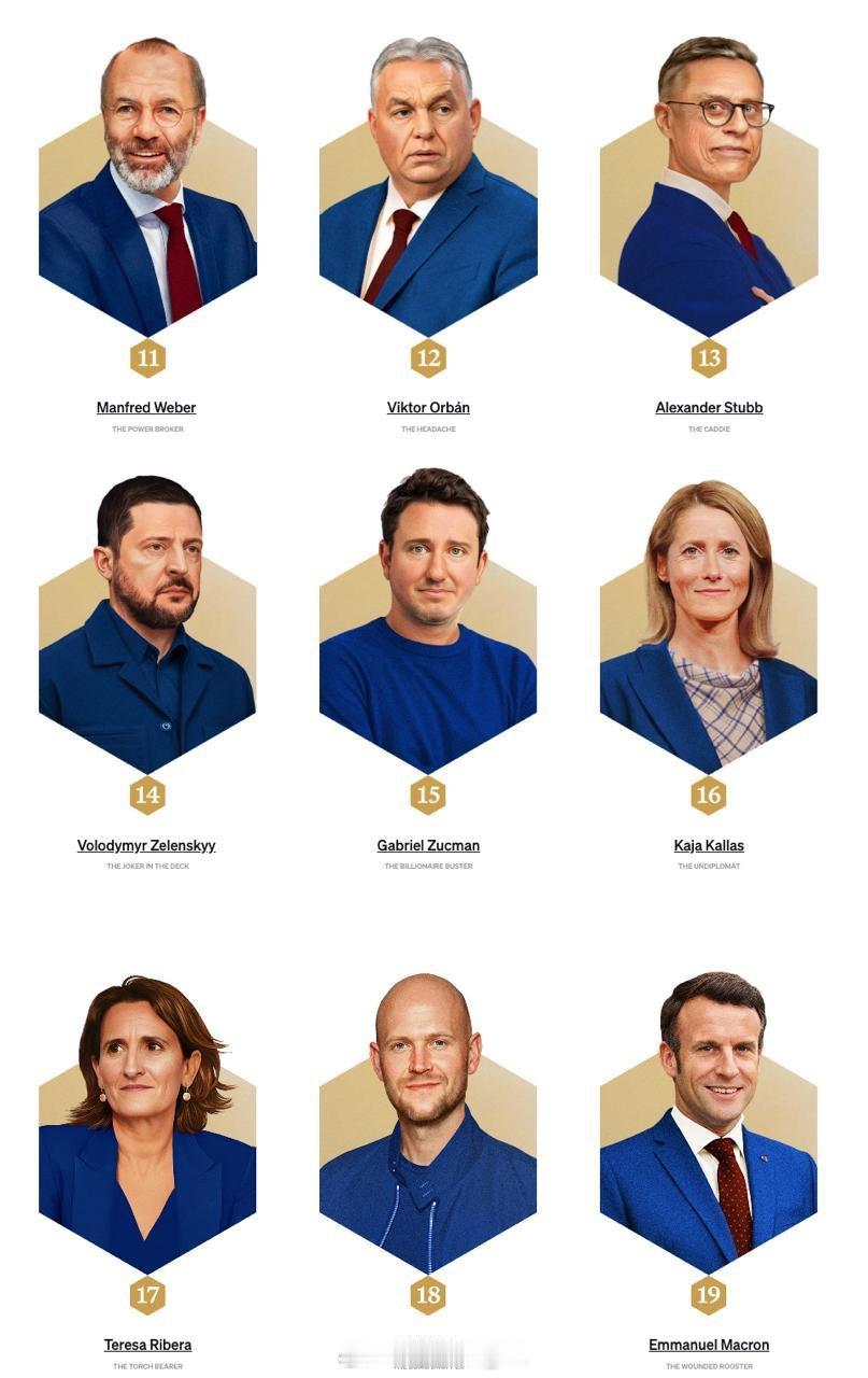 美国《政客》搞了个“欧洲最有权势的人”排名,给特朗普排第一,默尔茨排第三,普京给了第五,冯德莱恩排第七,吕特排第八,斯塔默排第十,欧尔班排第十二,泽连斯基排第十四,卡拉斯排第十六。不过我感觉这个作者似乎在故意针对马克龙,给勒庞排了第四,马克龙却放在第十九。