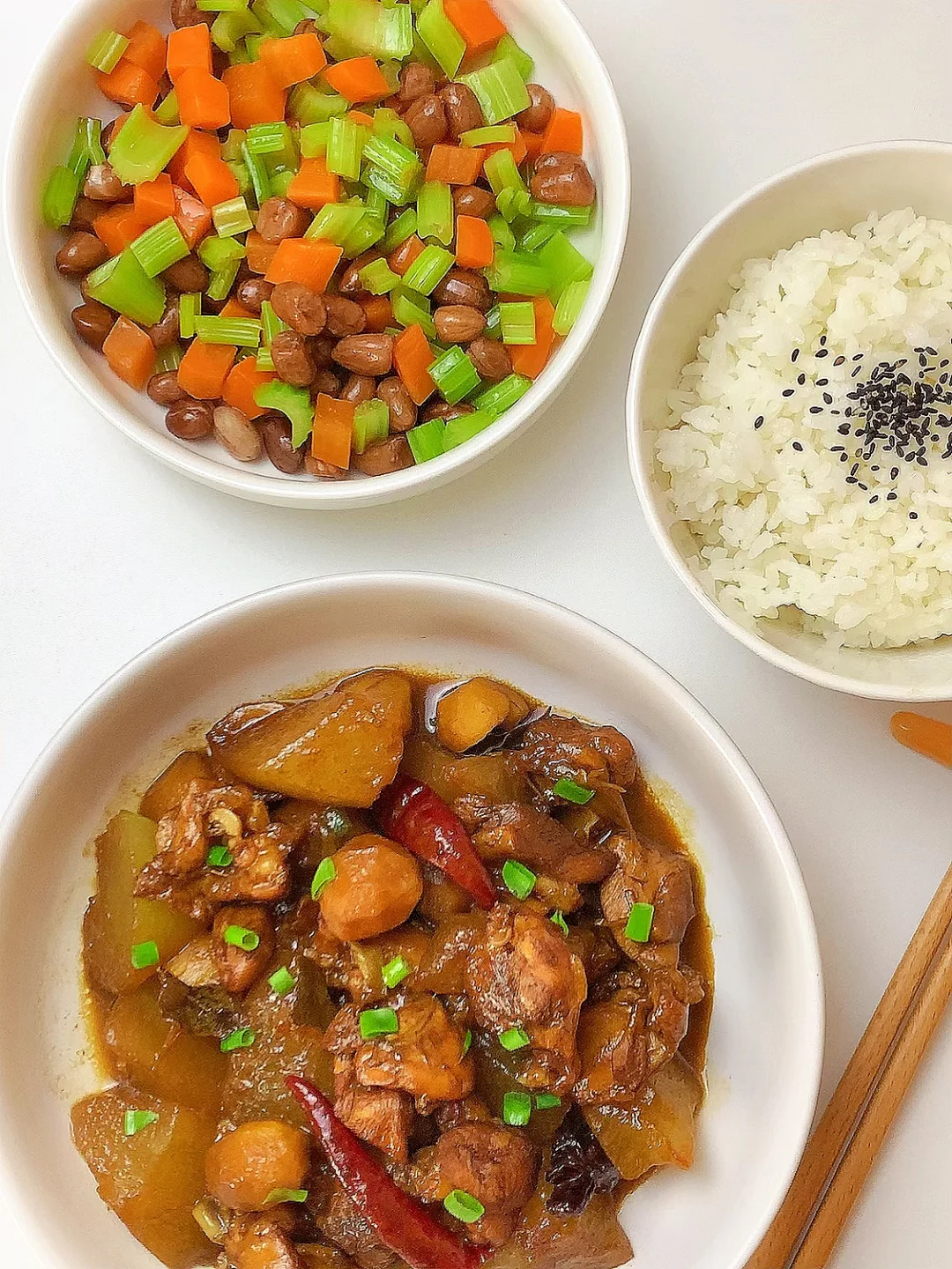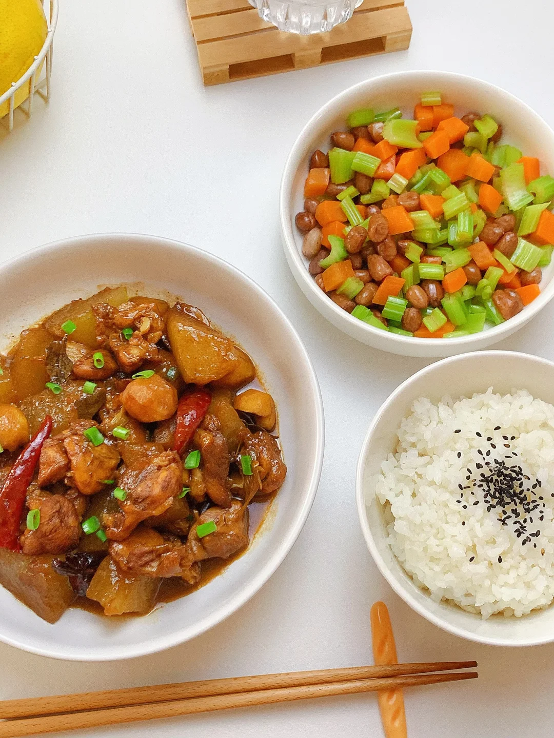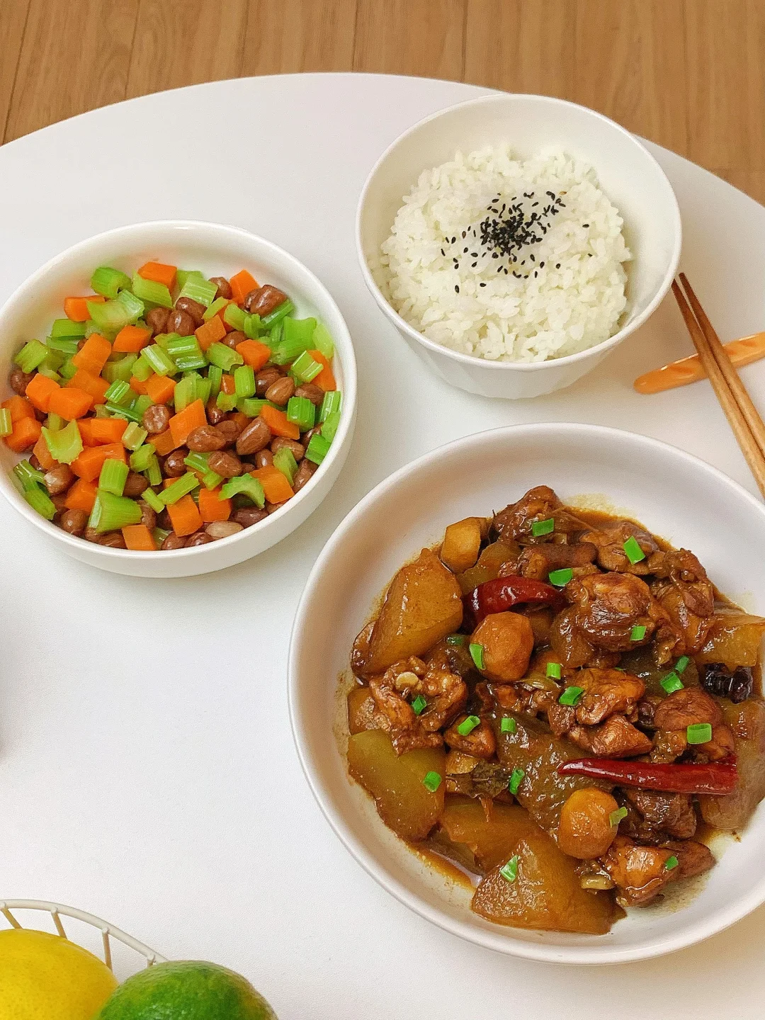 👩🏻🍳分享今日菜单 1️⃣凉拌芹菜花生米 2️⃣板栗鸡块炖冬瓜 主食:米饭🍚 ……………………………………………………………………………… 🛒食材清单:鸡蛋 | 青椒🫑 | 圆白菜 📝早八打工人的一日三餐,拒绝外卖[偷笑R],坚持做饭的一天,周末在家也要好好吃饭呀~ ₍˄·͈༝·͈˄*₎◞ ̑̑