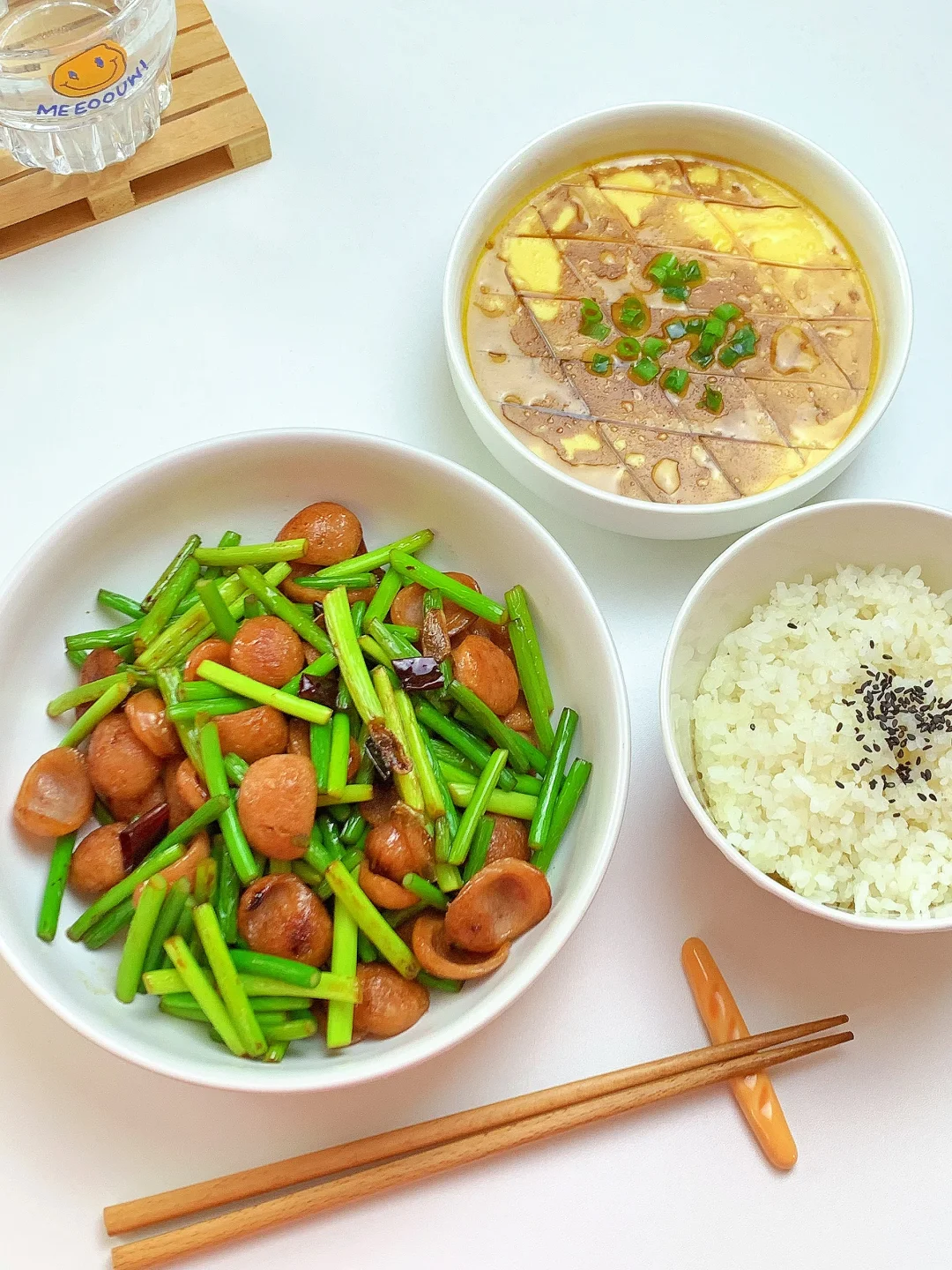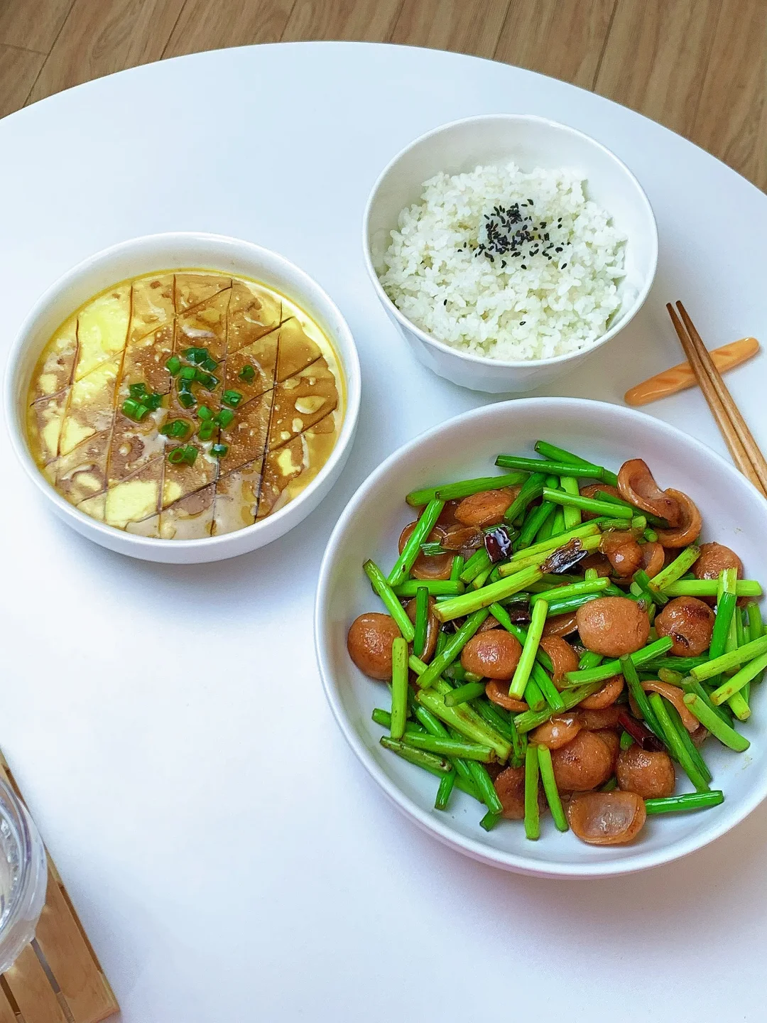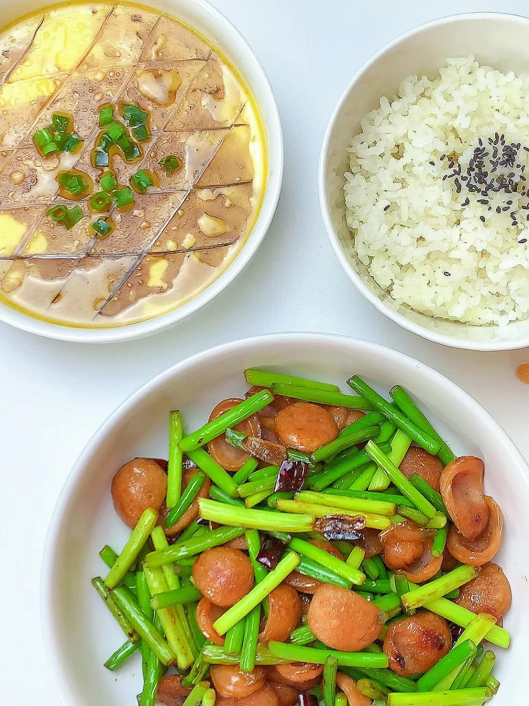 👩🏻🍳分享今日菜单 1️⃣水蒸蛋 2️⃣肉肠炒蒜薹 主食:米饭🍚 ……………………………………………………………………………… 🛒食材清单:蒜薹 | 肉肠 | 鸡蛋🥚 📝早八打工人的一日三餐,拒绝外卖[偷笑R],坚持做饭的一天,吃简单干净的饭菜~ ₍˄·͈༝·͈˄*₎◞ ̑̑