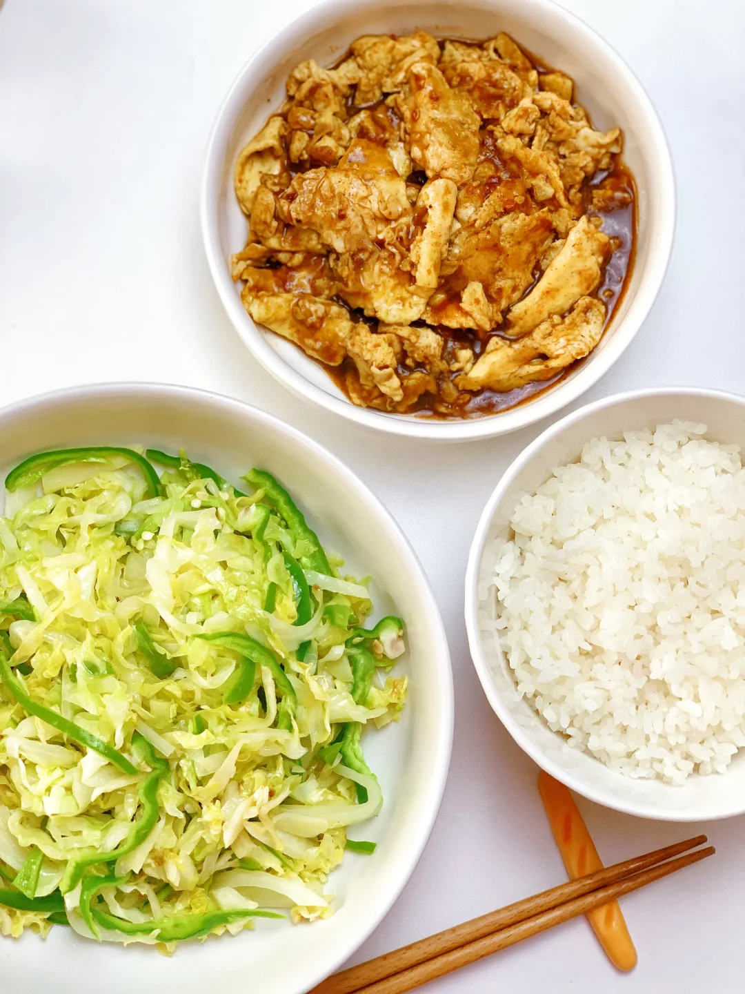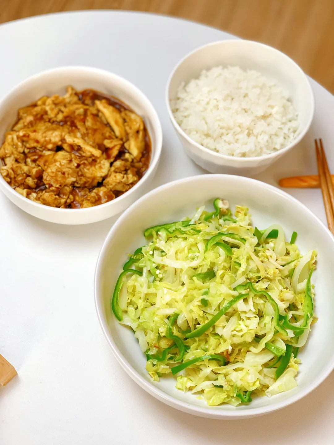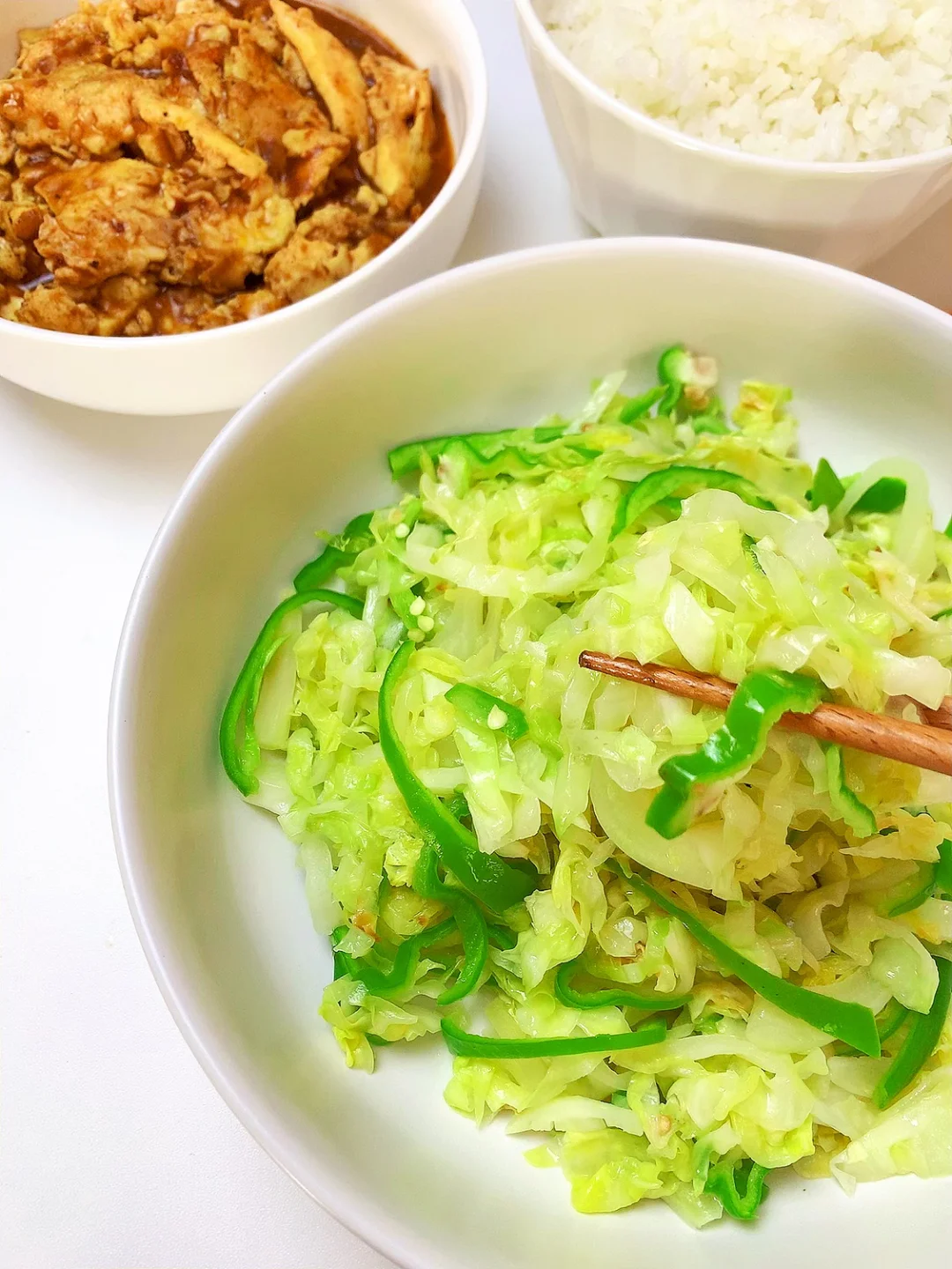 👩🏻🍳分享今日菜单 [一R]清炒圆白菜 [二R]酱香鸡蛋 主食:米饭🍚 ……………………………………………………………………………… 🛒食材清单:鸡蛋 | 青椒🫑 | 圆白菜 📝早八打工人的一日三餐,拒绝外卖[偷笑R],坚持做饭的又一天,吃简单干净的饭菜~ ₍˄·͈༝·͈˄*₎◞ ̑̑