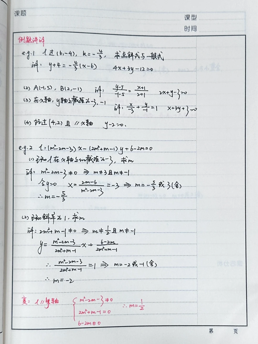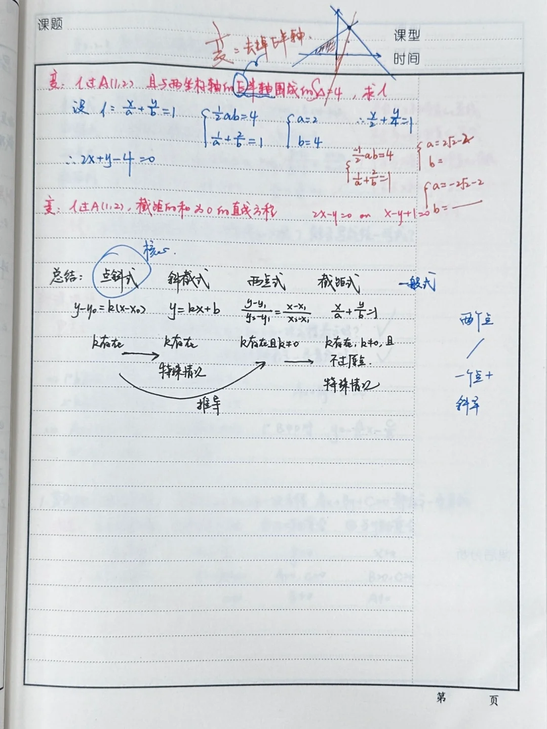 今天辛苦啦,安慰自己,哈哈哈~ 直线的方程有三个课时,五个形式,要类比学习,掌握核心,放到一起备课有一个清晰的框架也蛮好的~