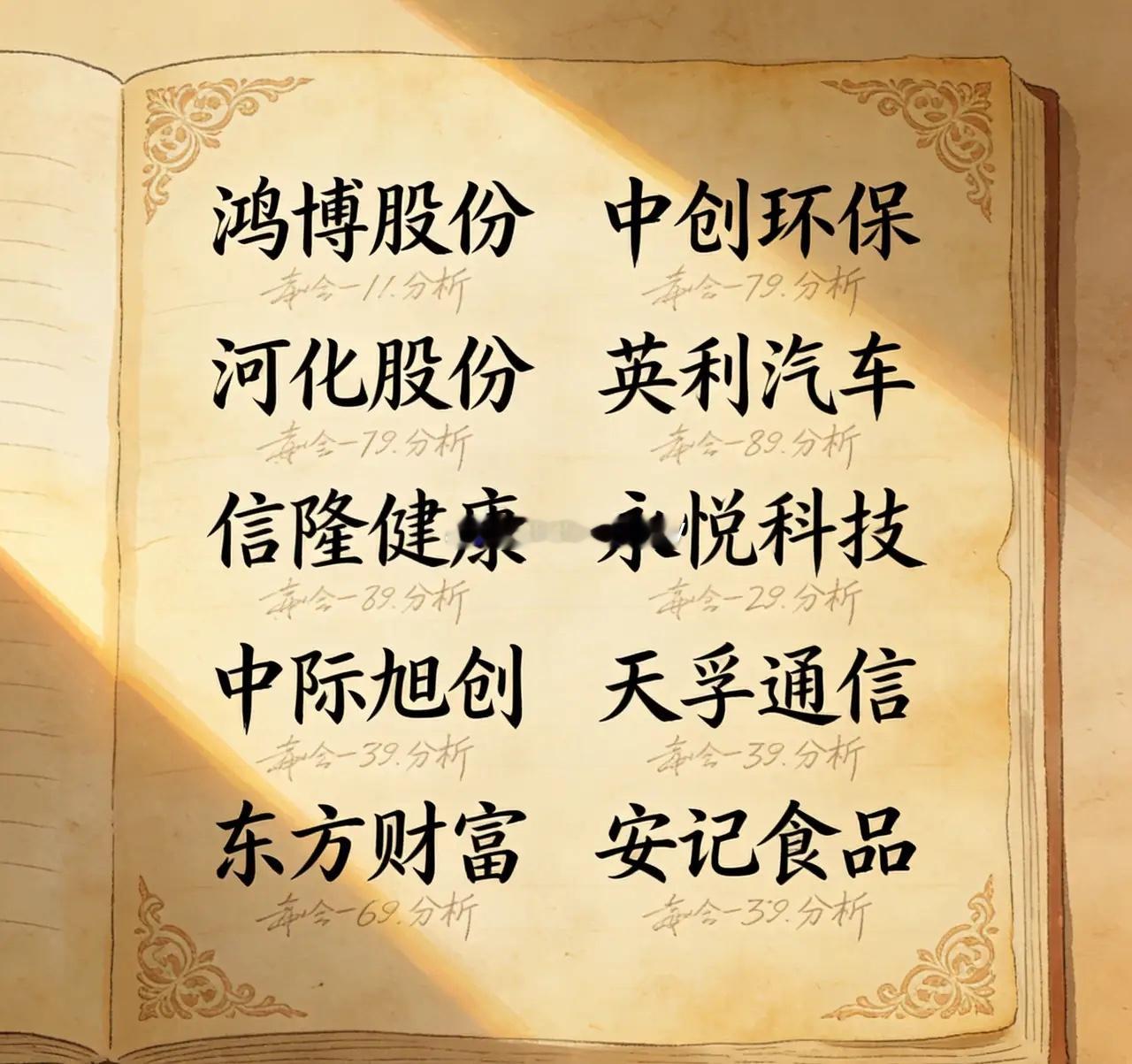大胆预测,明天这10支股票,可能冲击涨停,具体分析如下:(纯属个人看法和分析,不代表真实情况)1. 鸿博股份:12月9日已涨停,股价18.36元,公司兼具英伟达+AI算力+海峡两岸概念,市场热度高,资金关注度强,有望借助概念热度继续冲高。2. 中创环保:12月9日股价涨停,报10.30元,公司拥有海峡两岸+自贸区+高温滤料概念,近期走势强劲,且流通市值相对较小,容易受到资金炒作。3. 河化股份:具有海峡两岸+医药+控制权概念,12月9日首板涨停,股价8.06元,短期资金流入明显,在概念加持下,有继续连板的可能。4. 英利汽车:12月9日涨停,股价5.28元,公司涉及福建自贸+汽车+海峡两岸概念,受益于区域政策利好和汽车行业的复苏,股价有望进一步上扬。5. 信隆健康:12月9日涨停,股价8.51元,公司属于海峡两岸+康复器材+配件板块,康复器材市场需求有望随着人口老龄化而增长,叠加区域概念,具备上涨动力。6. 永悦科技:12月9日涨停,股价6.63元,公司涵盖机器人+海峡两岸+低空经济概念,低空经济是新兴产业,发展前景广阔,机器人概念也备受市场关注,多重概念叠加使其有冲击涨停的潜力。7. 中际旭创:全球光模块龙头,1.6T产品技术领先,绑定英伟达、谷歌等巨头,12月9日股价上涨6.32%,报606.00元,在AI算力需求爆发的背景下,业绩确定性强,有望继续上涨。8. 天孚通信:光模块上游核心器件龙头,CPO概念,12月9日股价创历史新高,报240.15元,随着算力产业的发展,对光模块上游器件的需求也将增加,公司有望受益。9. 东方财富:互联网券商龙头,交易费率下调提升市场活跃度,将直接增厚公司业绩,12月9日已有资金提前布局,股价相对稳定,在金融板块中具有较强的吸引力。10. 安记食品:福建板块+调味品双龙头,已实现5连板,资金抱团明显,同时叠加消费属性,在政策提振消费的背景下,有望借助板块热度继续连板。以上信息基于网络公开资料整理,仅供参考,不构成投资建议。