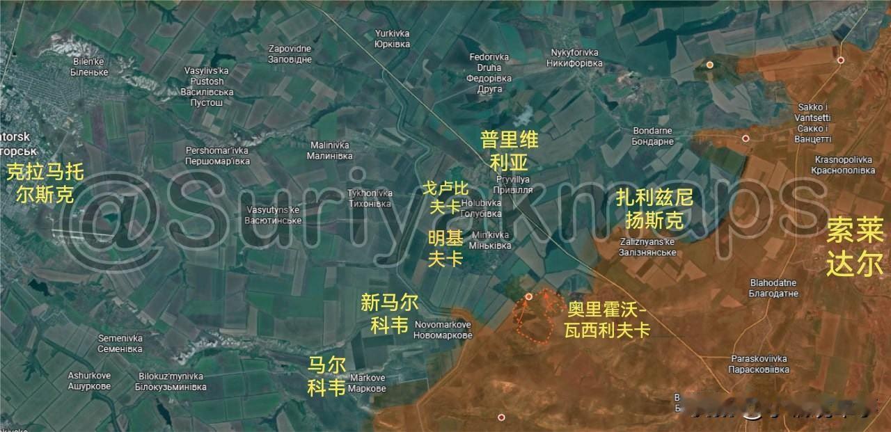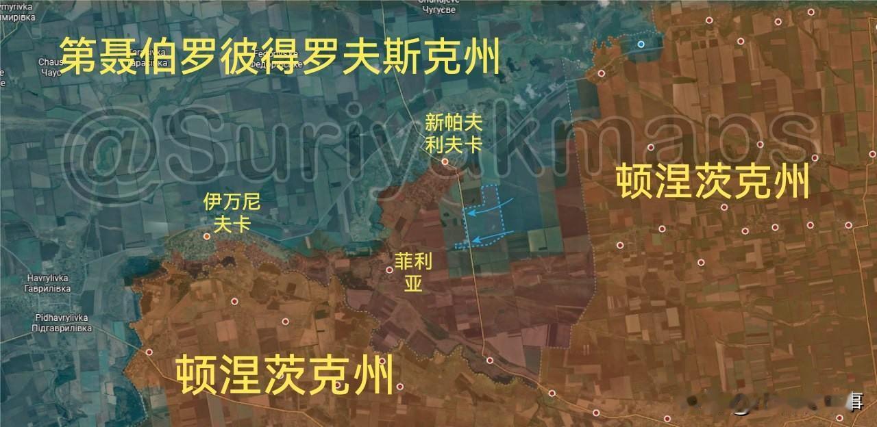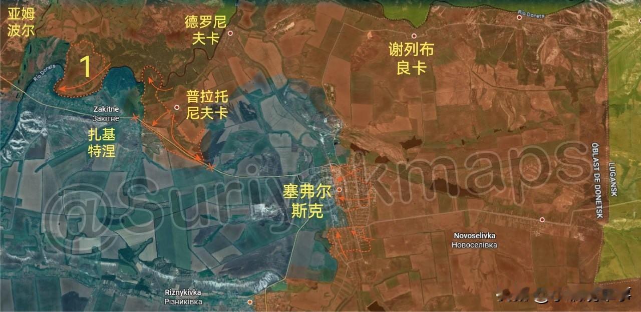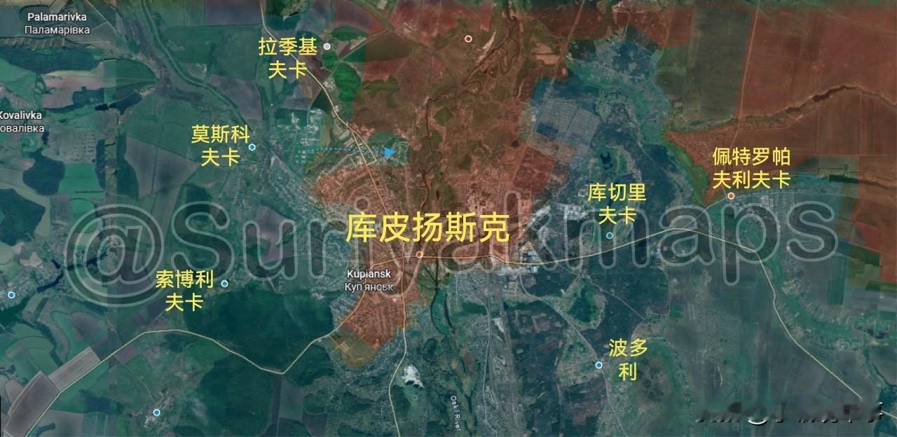 12月8日俄乌最新战报: 1.哈尔科夫州前线: ①过去两天里,俄军控制了利曼村的大部分地区以及维利恰市中心(沿着铁路线推进)(图一)。 ②在占领沃夫昌斯克市后,俄军开始向该市附近的沃夫昌斯克·胡托里村发起进攻(图一)。 ③由于防线出现漏洞,俄军在库皮扬斯克市西部地区的处境继续恶化。乌军已推进至扎赫西尼基夫库皮扬斯克街以外,抵达毗邻奥斯基尔河的米丘林娜街。尽管他们未能切断俄军的补给路线,但目前局势已十分危急,未来几天情况可能会进一步恶化(图二)。 2.塞弗尔斯克及其方向前线: ①过去两天里,俄军继续向普拉托尼夫卡村南部和西南部推进,切断了T-05-13公路,并抵达了扎基特涅村的郊区(图三)。 ②俄军在北顿涅茨河北岸区域占据了新的阵地(图三1)。 ③随着通往塞弗尔斯克市的最后一条主要补给路线被切断,乌军在该市的阵地已经崩溃,从而使俄军得以占领塞弗尔斯克市60%的地区(图三)。 3.索莱达尔方向前线: 经过一个月的阵地战后,俄军终于在奥里霍沃-瓦西利夫卡村取得了进展,占领了该村的中心区域及相邻的战壕(图四)。 4.季米特洛夫前线: 在季米特洛夫市南部推进的同时,他们继续向该市以西推进,攻占了斯维特列镇的大部分区域、斯特普诺耶公墓和公交车站(图五2)。 5.第聂伯罗彼得罗夫斯克州前线: 过去三天里,乌军重新夺回了新帕夫利夫卡村以南的战壕,同时继续实施切断俄军在该地区补给线的行动(图六)。 6.扎波罗热州前线: ①乌军短暂夺回多布罗皮利亚村后,俄军在接下来的几个小时内基本收复了该村(图七)。 ②过去三天里,俄军继续在胡里艾伯勒市内推进(图七)。