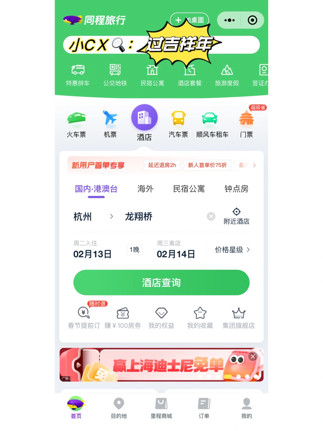 春节出行到哪都是人山人海,建议提前上同程酒店安排住宿。