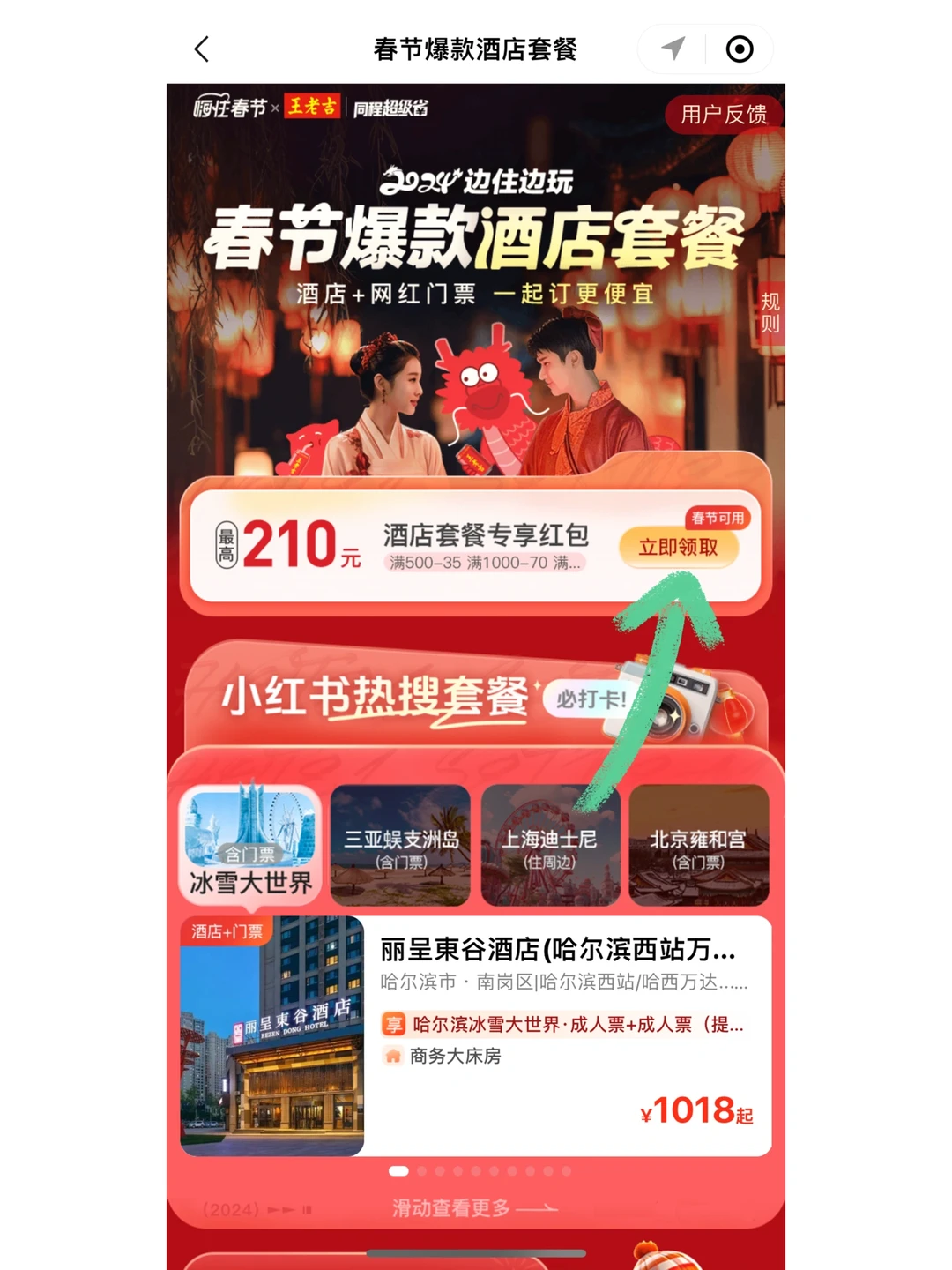 👉🏻现在去小🍊序🔍:“过吉祥年”,就能获得zui高210元的红包🧧,还有近千元的超热门目的地的酒店+门票套餐优惠,超划算!👍