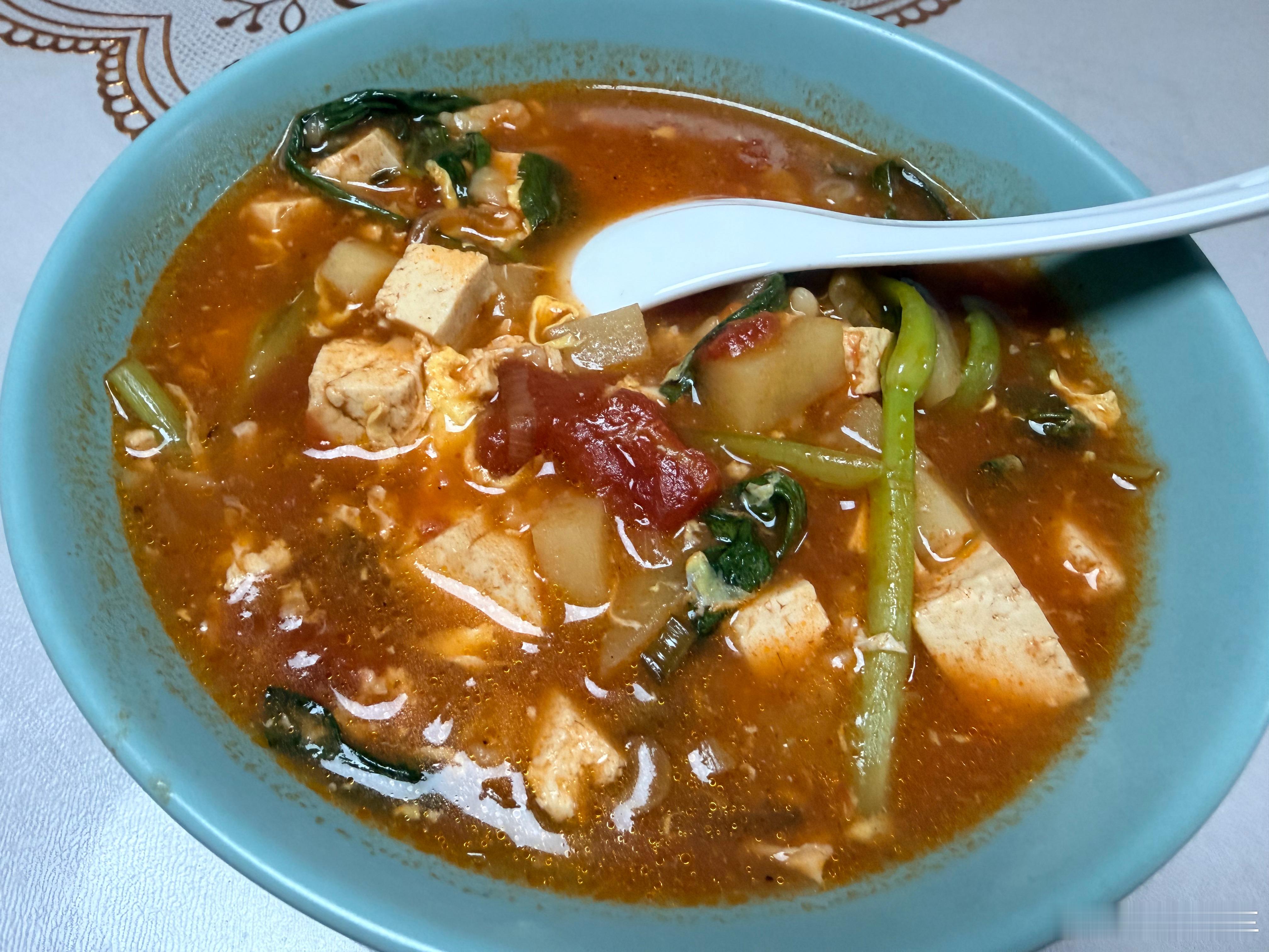 回国后,吃的正经餐!家的味道!我的秘制豆腐加番茄蔬菜疙瘩汤!非常健康!对付一口