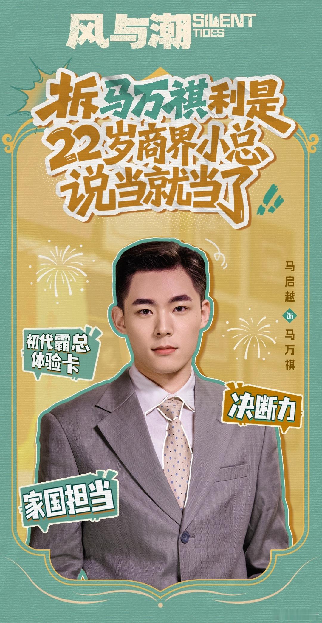 风与潮 谁懂啊!马启越把马万祺的少年意气与家国大义平衡得太好了!21 岁的年纪演出了 22 岁华商的沉稳,谈判桌上硬刚敌人时气场拉满,私下为澳门民生奔走时又满是赤诚,这角色真的被他演活了!