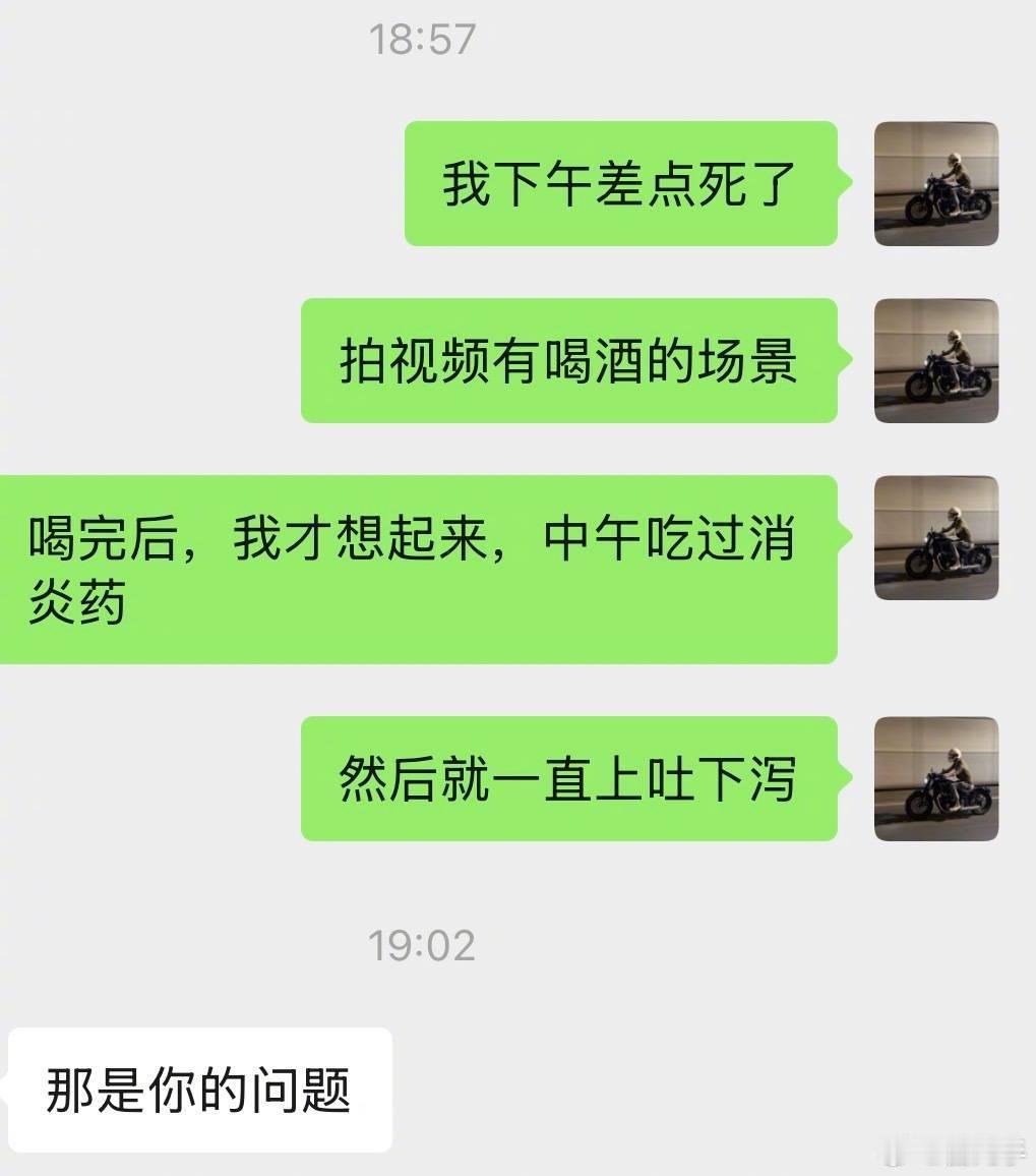 我要笑死了留几手给葛夕发消息,说自己喝酒又吃了头孢要死了,葛夕说:那是你的问题