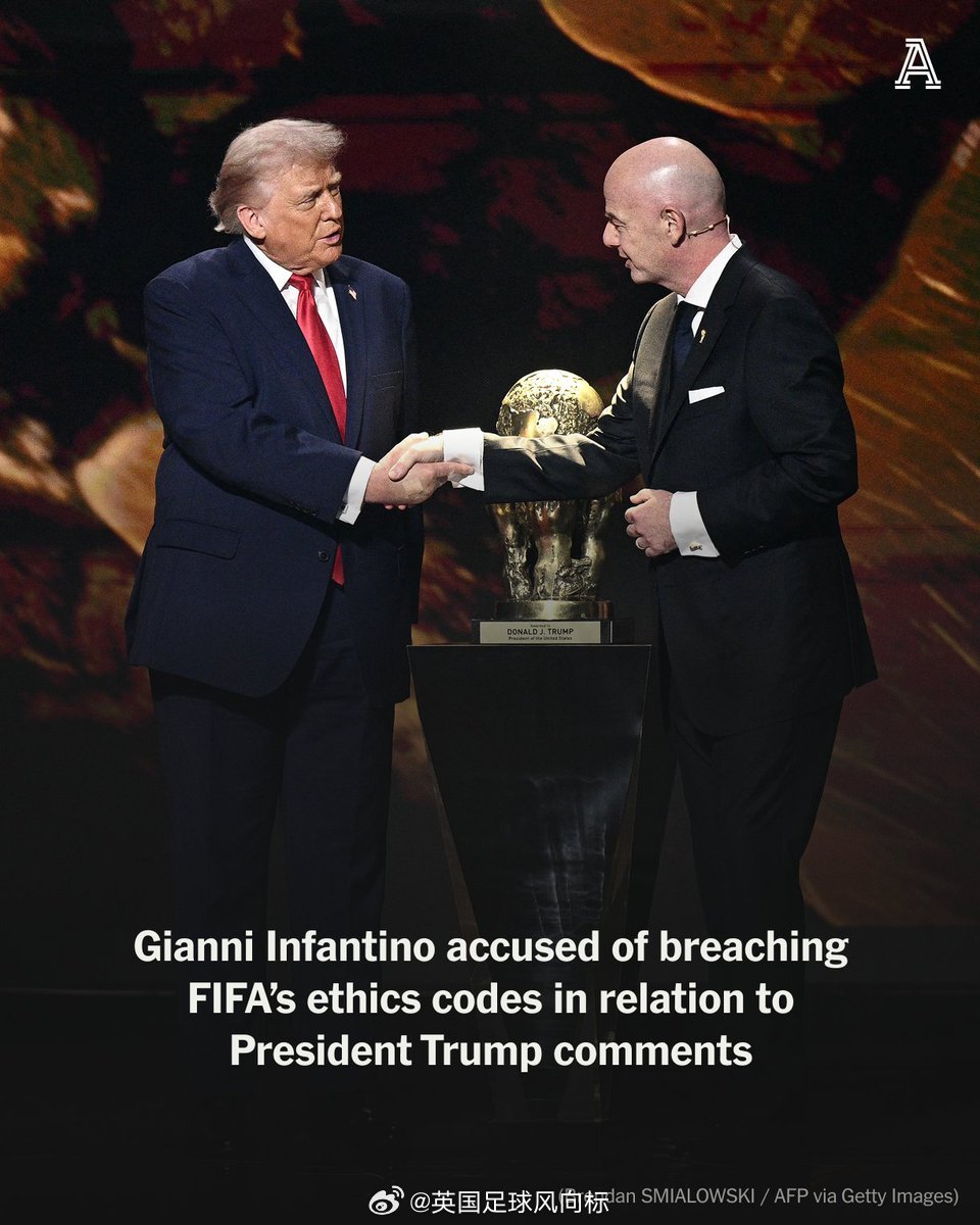 TA消息,国际足联道德委员会,已经收到一份正式投诉,指控FIFA现任主席因凡蒂诺,“屡次违反”国际足联的政治中立原则。这份投诉还要求对特朗普总统获得国际足联和平奖的过程进行调查。提交投诉的是FairSquare,这是一个非营利组织和倡导团体,主要关注全球劳工移民权利、政治压迫和体育。该组织表示,在体育领域,它提倡“更好、更民主的治理,以防止体育机构造成伤害和痛苦”。