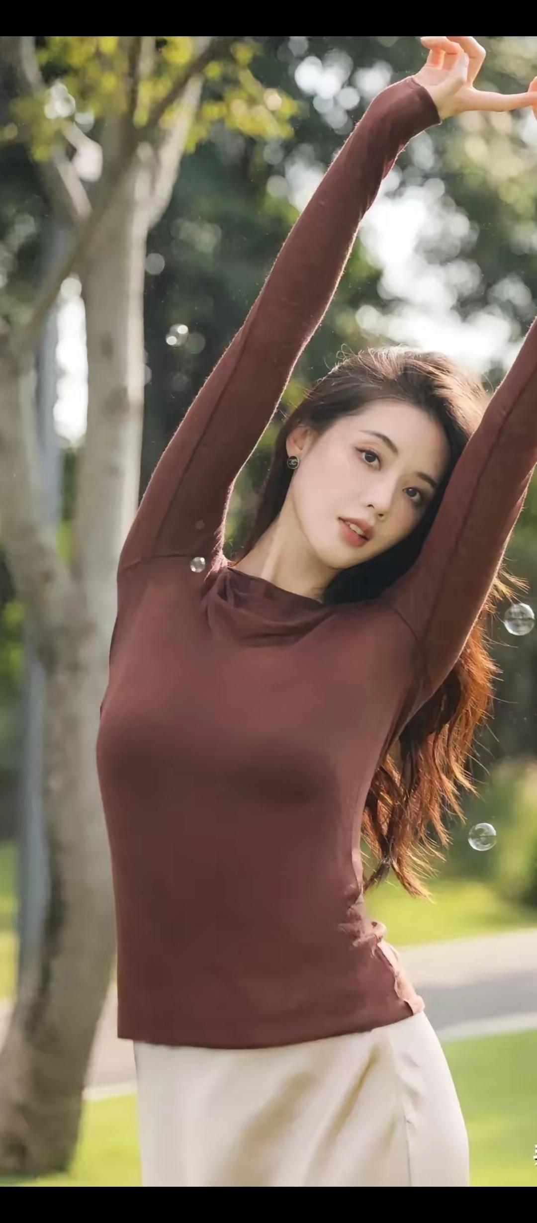 棕色毛衣搭配米色长裙,优雅气质,尽显自然之美!🍂💃