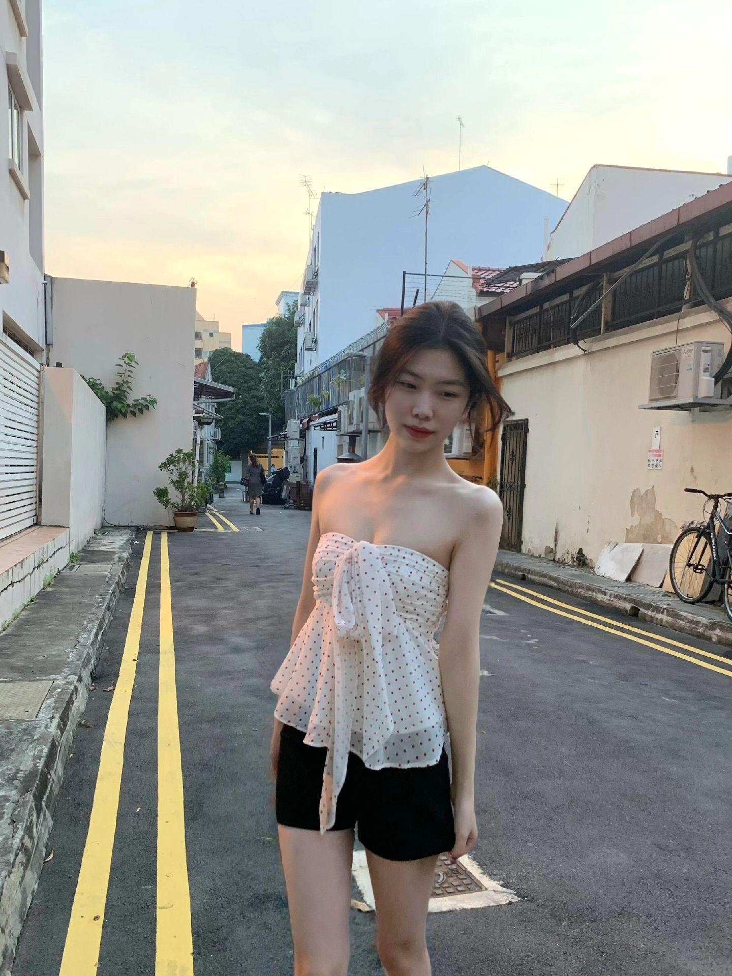 “穿红抹胸配黑短裤拍写真,这算不算‘擦边’?”刷到这组图我直接懵了。姑娘穿