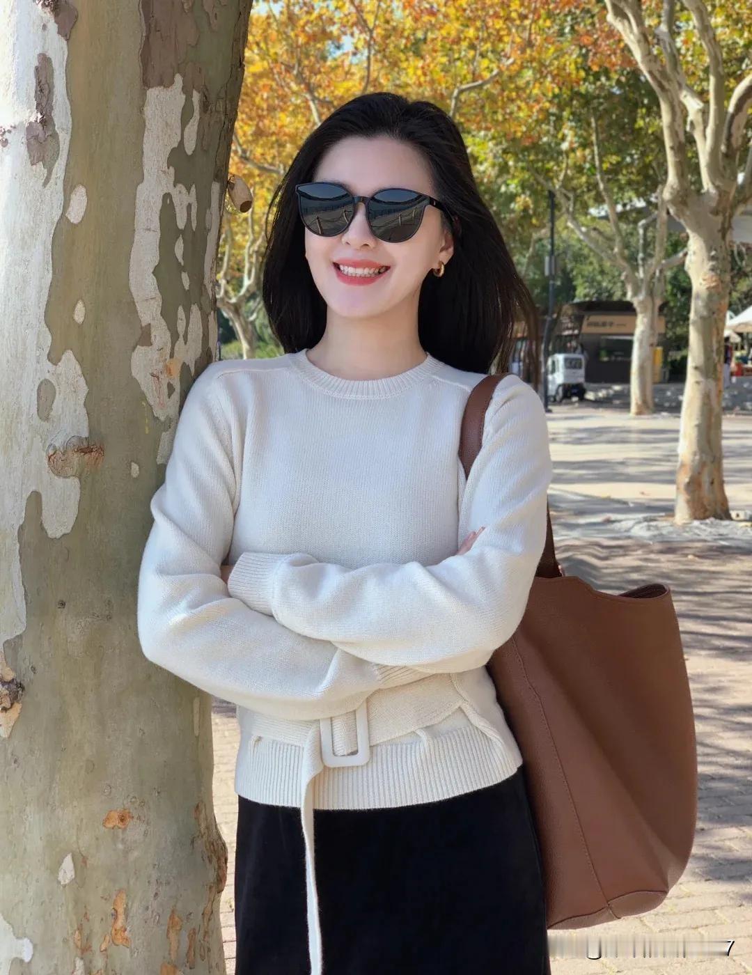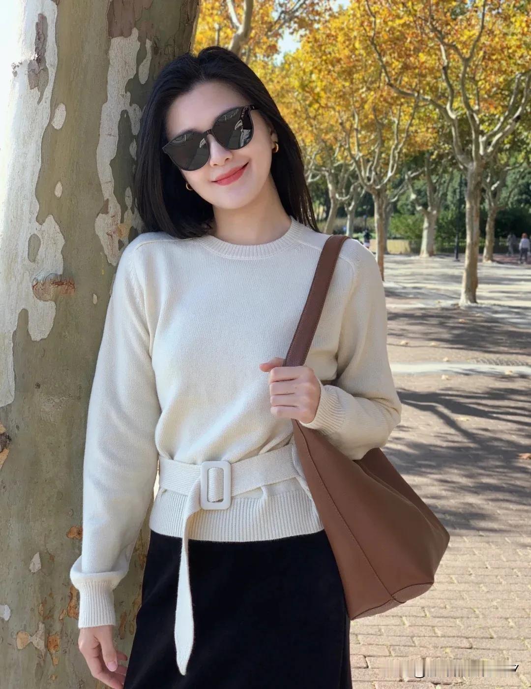 冬日暖阳洒下,整个世界都变得温柔起来。此时,穿上棕色毛衣与黑色丝袜的搭配,简直美