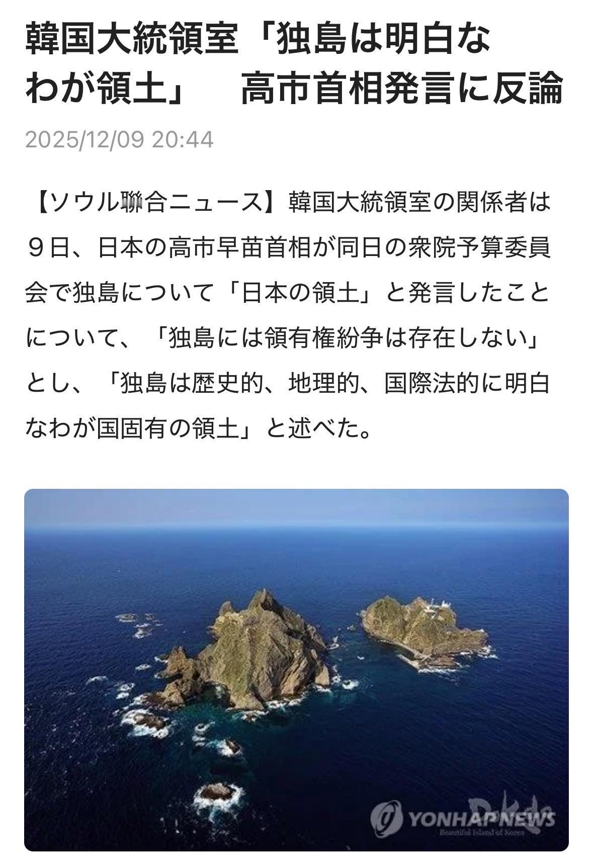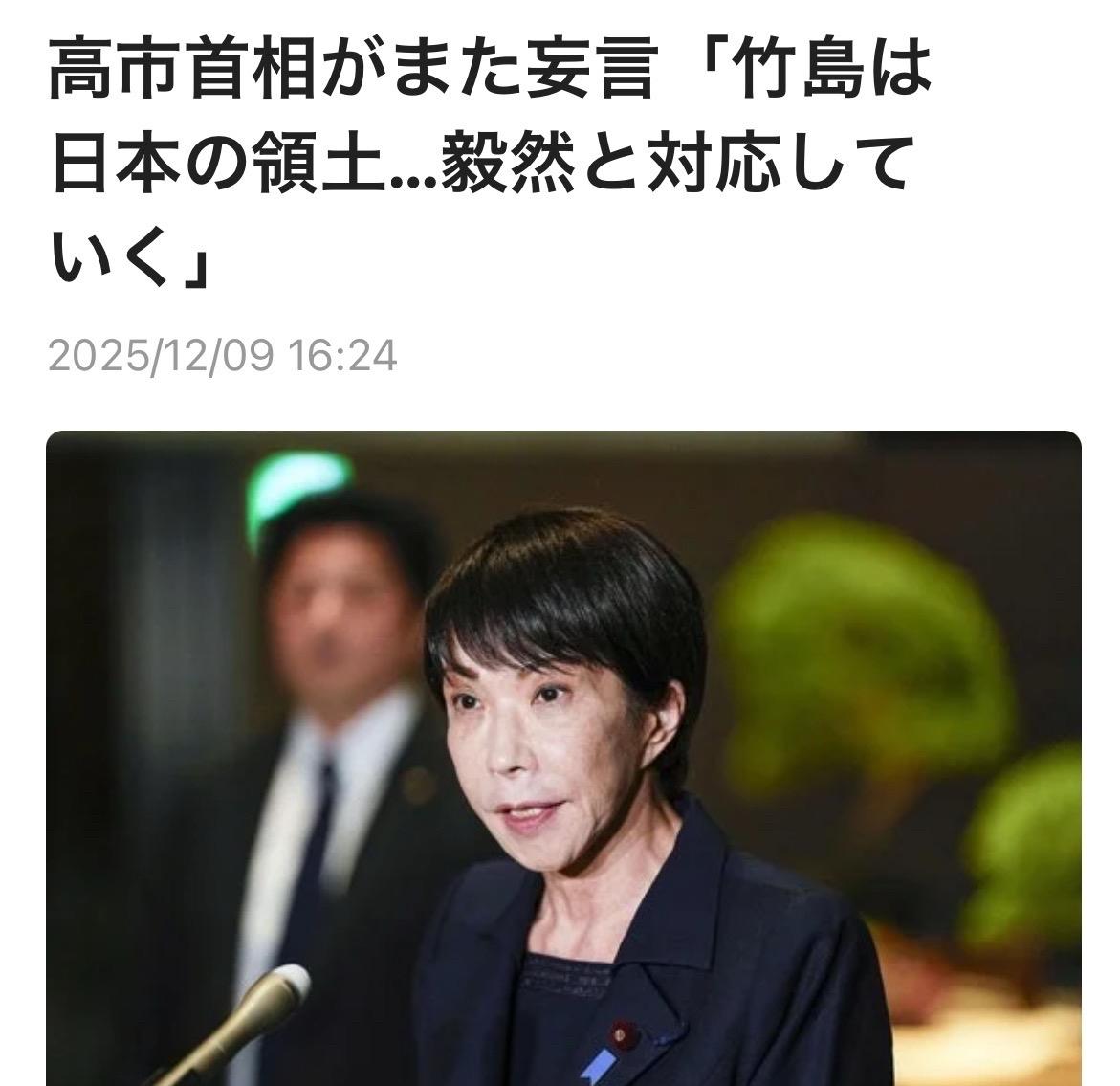 12月9日,日本首相高市早苗在众议院预算委员会答辩时说独岛(韩国的竹岛)是日本领土,不存在领土主权纷争,“独岛历史上、地理上、国际法上很明白是我国固有领土”。 ——韩国总统李在明这个老滑头在中日关系上采取中立偏日本,正计划1月中旬访日,不知道还能不能成行。希望还是能在这个问题上据悉拱火,越烧越旺。