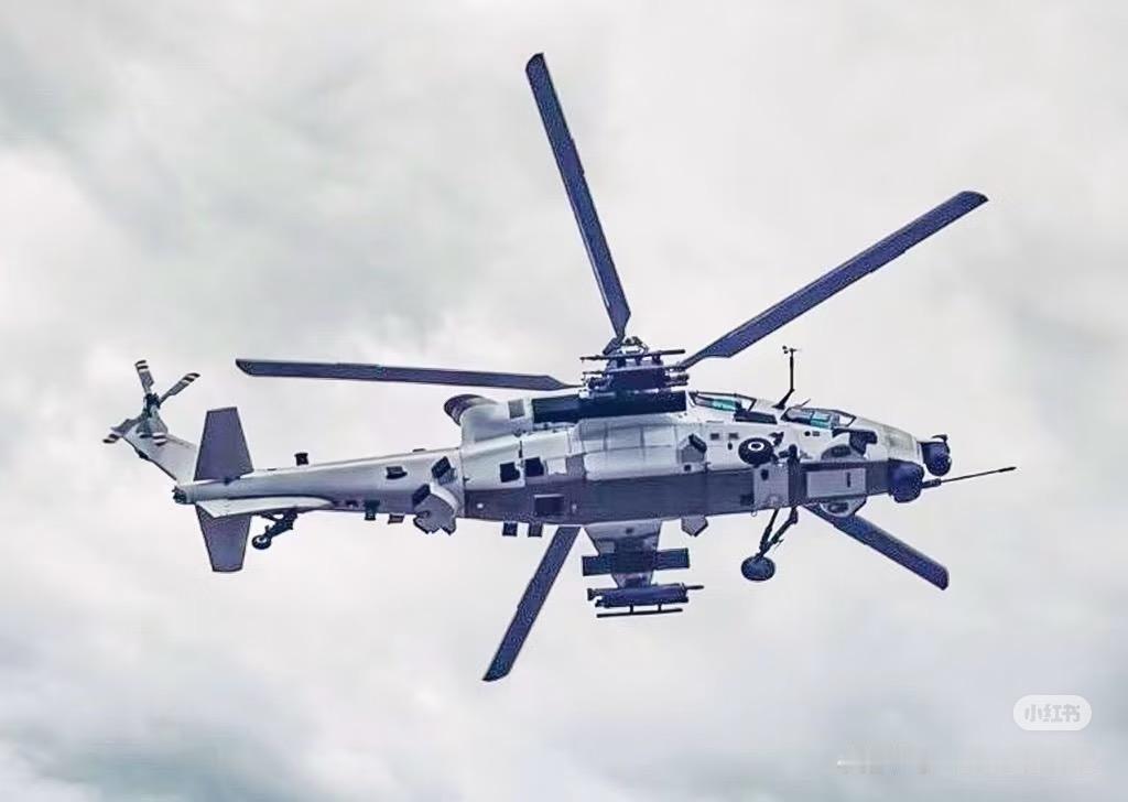 再来看一下这张白色涂装的直-10最新型号图片。在机身下半部分,向四个方向安装了四个平板相控阵天线,或许这就是最新的主动体制来袭导弹告警系统,不仅可以通过无线电照射信号发现来袭导弹,还可以主动发现来袭导弹,提供来袭目标的距离、位置、速度等信息,在配合电子对抗和激光对抗设备,有效发现和摧毁来袭导弹,极大提高了直升机在低空的生存能力。