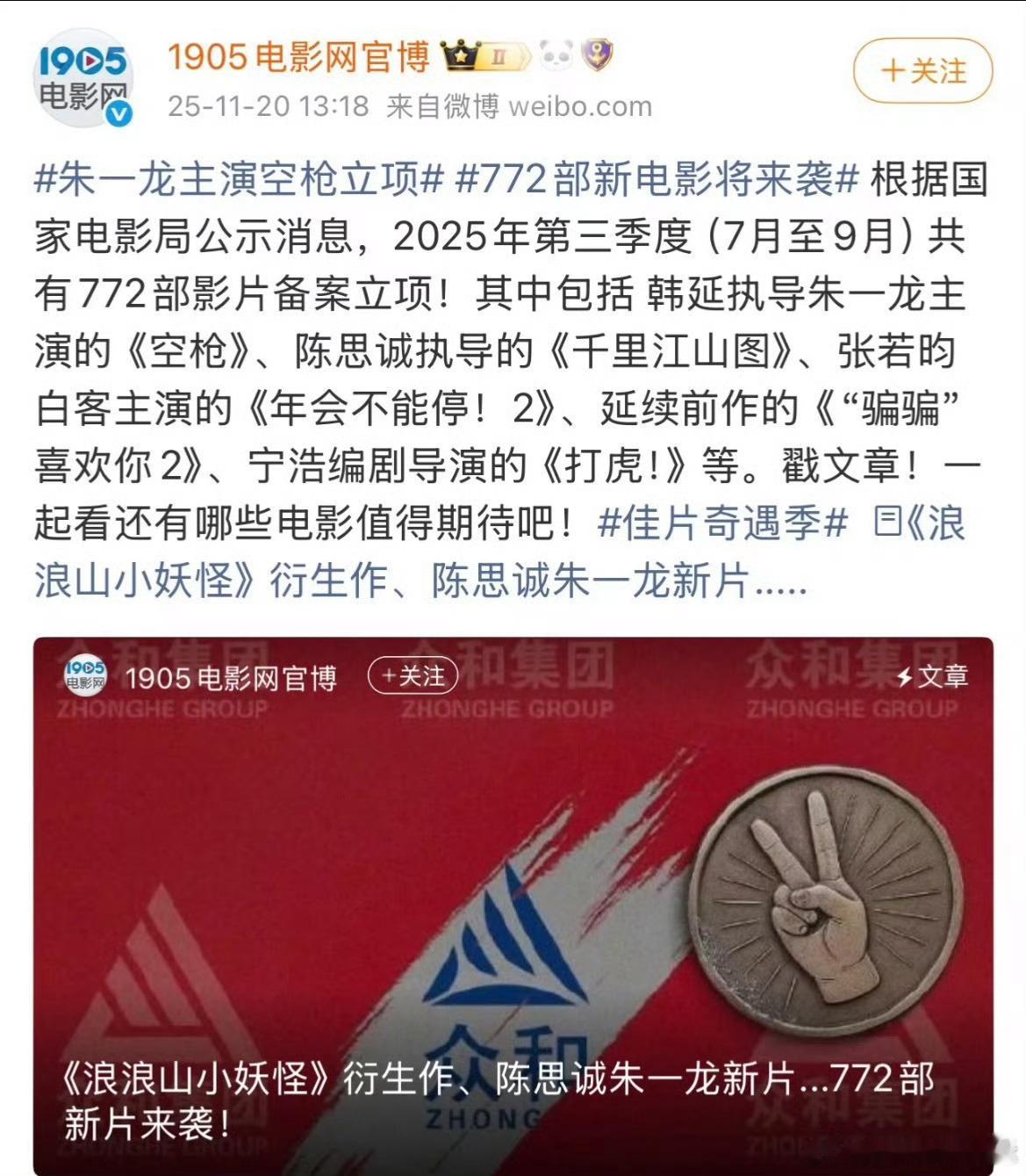 空枪 领衔主演:朱一龙 特别主演:檀健次看这咖位之前单宣朱一龙也没啥问题吧?