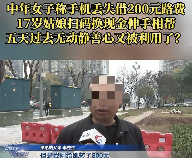 重庆,男子吃完饭,开玩笑让17岁女儿结账,女儿磨蹭半天也没付钱,男子心想刚给她转800元哪去了?一问才知,女儿几天前遇到一中年女子,说她手机丢了,想借200块钱路费回家,女儿心软就帮忙去便利店兑换200现金给了中年女子,而那中年女子给女孩留下一个微信号就走了,过了5天,都没有通过好友验证,男子见女儿的善良被利用非常气愤,他做了一个意外的举动。 重庆一家餐馆里,李先生吃完饭笑着让 17 岁的女儿彤彤结账,可彤彤磨磨蹭蹭半天,始终没掏出手机付款。 李先生心里犯了嘀咕,明明前几天刚给女儿转了 800 元零花钱,怎么结账时反倒犹豫了? 追问之下,彤彤才支支吾吾说出了实情。几天前她放学路上,遇到一位中年女子。对方说自己手机丢了,身上没现金,想借 200 元当路费回家,还说之后会通过微信把钱还回来。 彤彤看着对方着急的样子,心一软就答应了。因为自己身上只有手机支付,她还特意绕到附近的便利店,用微信兑换了 200 元现金交给中年女子。 女子接过钱后,当场给彤彤留了一个微信号,说回家后就通过好友验证转钱,随后匆匆离开。 可接下来的 5 天里,彤彤每天都打开微信查看,那个微信号始终没有通过她的好友申请。 一开始她还安慰自己,对方可能是忙忘了,可眼看着时间一天天过去,她慢慢意识到,自己可能被欺骗了。 知道真相的李先生又气又心疼。气的是有人利用女儿的善良骗钱,心疼的是女儿一片好心,最后却被辜负。 他看着彤彤低落的样子,没舍得批评她,反而琢磨着该做些什么,既能帮女儿讨回公道,又能不让这份善良被打击。 思来想去,李先生联系了当地的记者。 他想通过媒体说说这件事,希望那个中年女子看到新闻后,能主动通过好友验证,把 200 元还给彤彤,不要让孩子对善意失去信心。 他也想借着这件事告诉女儿,她愿意帮助别人没有错,但以后做好事时,也要多留个心眼,保护好自己。 彤彤在一旁听着父亲的话,眼眶有点红。她说当时没多想,就觉得对方很可怜,要是自己遇到这种情况,也希望有人能帮忙。 现在虽然没拿到钱,但听父亲这么说,心里舒服多了,也知道以后再遇到类似事情,会先跟家人商量,或者多留意对方的信息。 记者跟着李先生和彤彤,回到了当时彤彤给现金的地方。 那家便利店的店员还记得这个女孩,说那天她来兑换现金时,还特意问过是不是要帮别人,当时自己还提醒她小心点,没想到还是出了这样的事。 李先生说,200 元钱不多,但对孩子来说,这份被欺骗的感受才是最伤人的。他不想让女儿因为一次被骗,就再也不敢帮助别人。 所以哪怕只有一点希望,他也想试试,让那个中年女子知道,她的一个举动,可能会影响一个孩子对世界的看法。 现在李先生还在让彤彤时不时查看微信,希望能等到通过好友验证的消息。他也经常跟女儿聊起身边的好人好事,告诉她大多数人都是善良的,只是遇到事情时,多一份谨慎,才能让善意不被滥用。