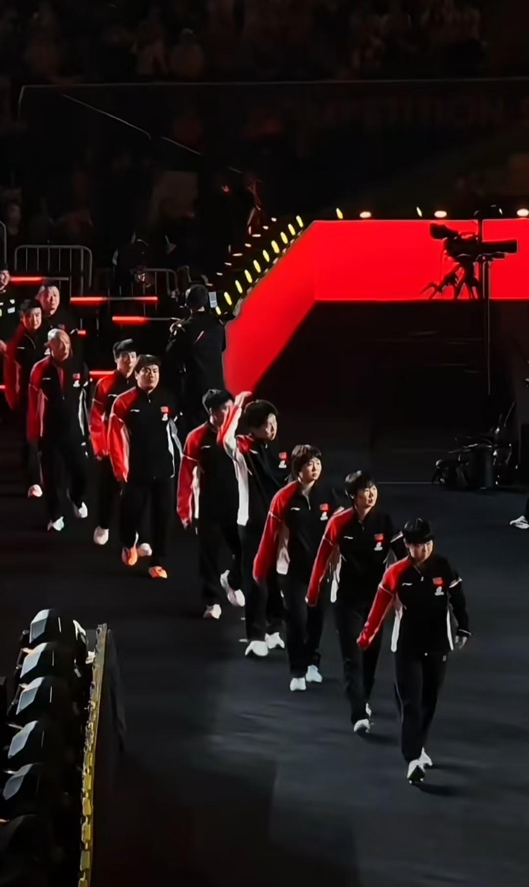 莎莎气宇轩昂的走在前面,后面跟着一群冠军。发现龙队、陈梦在的时候她就打头阵,如今龙队已不怎么上台了,小莎还是在前面带队。 莎莎真是常青树,一年比一年权威。 有她领头带着队伍走出来,中国队这气势无敌了。 不过莎莎这次应该不会迷路,毕竟后面有一群人在跟着,悄悄的告诉她走那边。