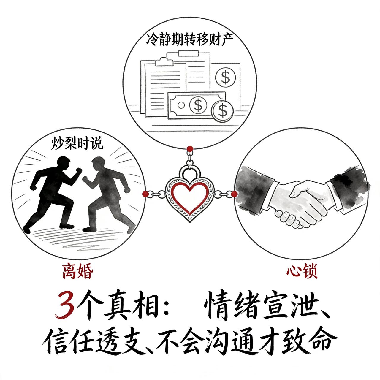 夫妻吵架提离婚?没人敢说的3个真相,普通人必看! 大家都在心疼“被提离婚”的人,我却发现:多数吵架时脱口而出的“离婚”,根本不是想散伙,而是藏着没说出口的求救——这届夫妻的婚姻危机,早就不是“爱不爱”,而是“会不会好好吵架”。 先看触目惊心的现象:2025年数据显示,离婚冷静期实施四年后,协议离婚量降了39.6%,但诉讼离婚案件却激增47%。更扎心的是,80%的夫妻吵架提离婚时,都没真正想过要分开,可偏偏有34%的婚姻,就毁在一次次“狼来了”的试探里。 安徽淮南的李女士和王先生,就是最典型的例子。结婚18年,俩人为孩子教育问题吵了十年,每次争执到最后,李女士都会喊“过不下去就离婚”,王先生则冷战到底。直到2025年,李女士真的起诉离婚,法官调解时才发现,俩人都舍不得这个家,只是把“离婚”当成了发泄不满的工具,却忘了好好说“我需要你的理解” 。 第一个真相:提离婚≠想离婚,90%是情绪宣泄或情感操控。心理学研究显示,吵架时说“离婚”,要么是应激反应下的“威胁式沟通”,想让对方妥协;要么是长期缺爱后的防御机制,怕自己先被伤害,所以先提出离开。就像有人摔门而去不是想走,而是想被挽留——可惜太多人听不懂这份“反向诉求”,把狠话当了真。 第二个真相:频繁提离婚的伤害,比真离婚更致命。数据对比更直观:偶尔因矛盾提离婚的夫妻,复婚率达24.3%;而每月吵架必提离婚的夫妻,婚姻存续时间平均不足3年,且72%的孩子会出现焦虑、自卑等心理问题。法律层面更残酷,《民法典》明确离婚需满足“自愿+事项协商一致”,但一次次“假离婚”的试探,会让夫妻信任度持续透支,等到真要解决问题时,没人再愿意让步。 第三个真相:冷静期不是“挽救期”,不会沟通才是婚姻杀手。很多人以为吵完冷战、提完离婚等冷静就好,却不知道冷静期已变成“财产争夺期”——北京某律所统计,冷静期内丈夫转移财产的比例上升57%,抢夺抚养权的恶性事件增加34%。真正能挽救婚姻的,从来不是“冷静”,而是把“离婚”换成“我很难过”,把冷战换成“我们聊聊问题在哪”。 给普通人3个实用建议,比冷战有用10倍: 1. 约定“吵架禁区”:提前说好不准提“离婚”“过不下去”,实在情绪上头就说“暂停1小时”,别让狠话变成不可逆的伤害; ​ 2. 把“指责”换成“需求”:不说“你从来不管孩子”,改说“我带娃太累,需要你每周帮我分担2天”,情绪宣泄不如精准提要求; ​ 3. 分清“真矛盾”和“假吵架”:如果是家暴、出轨等原则问题,果断止损及时维权(可起诉离婚并要求损害赔偿);如果只是生活琐碎,别把“离婚”当解决方案。 婚姻就像瓷器,偶尔磕碰很正常,总说“摔了算了”,再结实的瓷也会碎。那些能走一辈子的夫妻,不是没吵过架,而是从来没把“离婚”当成吵架的终点。 最后投票:你觉得夫妻吵架提离婚,该当真吗? 点赞A:不该,大概率是气话,冷静后好好沟通就好; 点赞B:该当真,说出口就是心里有了隔阂,难修复! 欢迎在评论区说说你的经历,看看谁的故事更戳心~