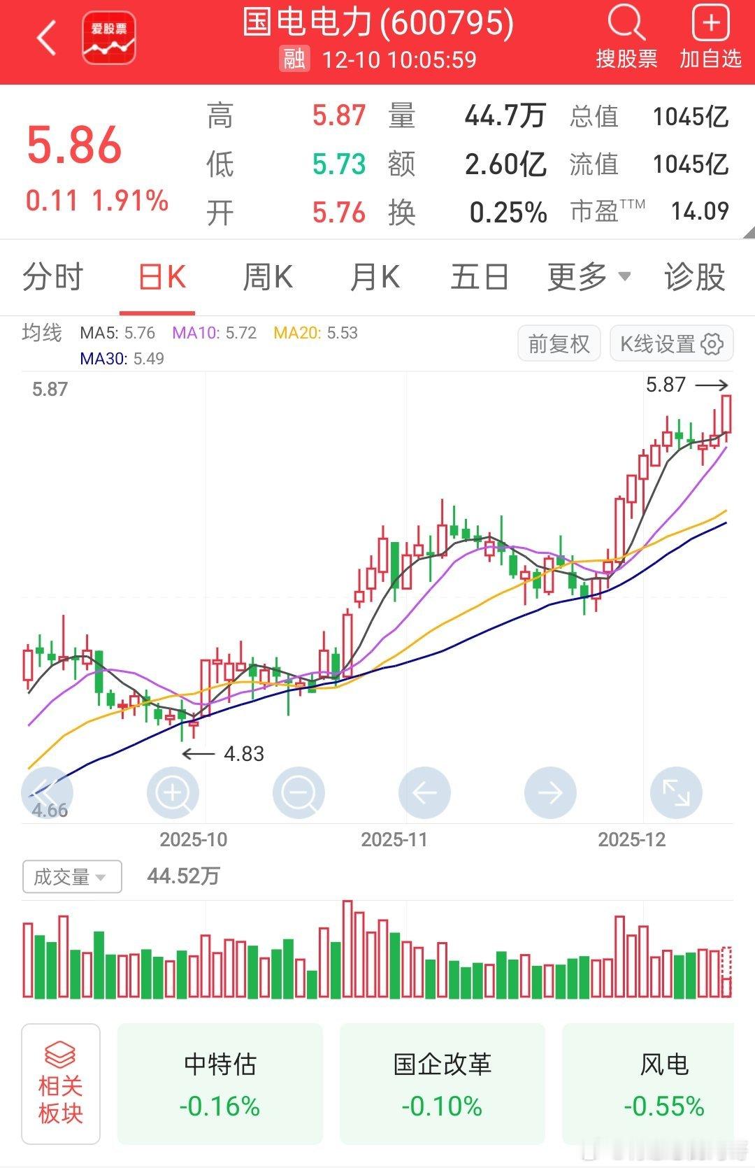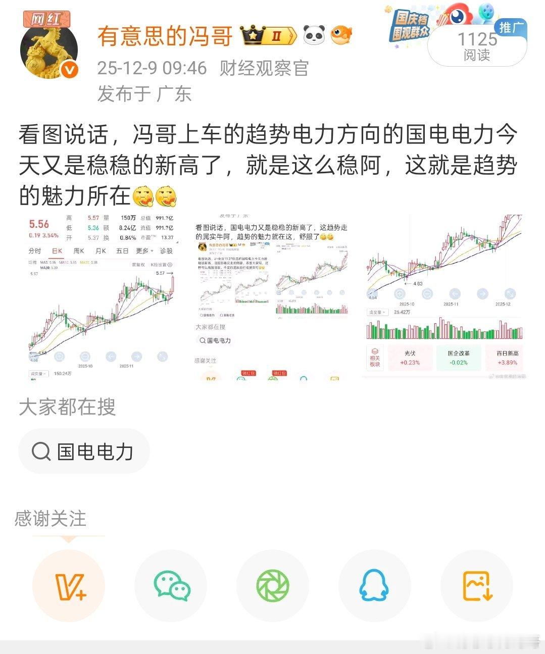 看图说话,冯哥上车的国电电力继续新高,这个趋势真的牛阿,这一波上来太完美了,舒服