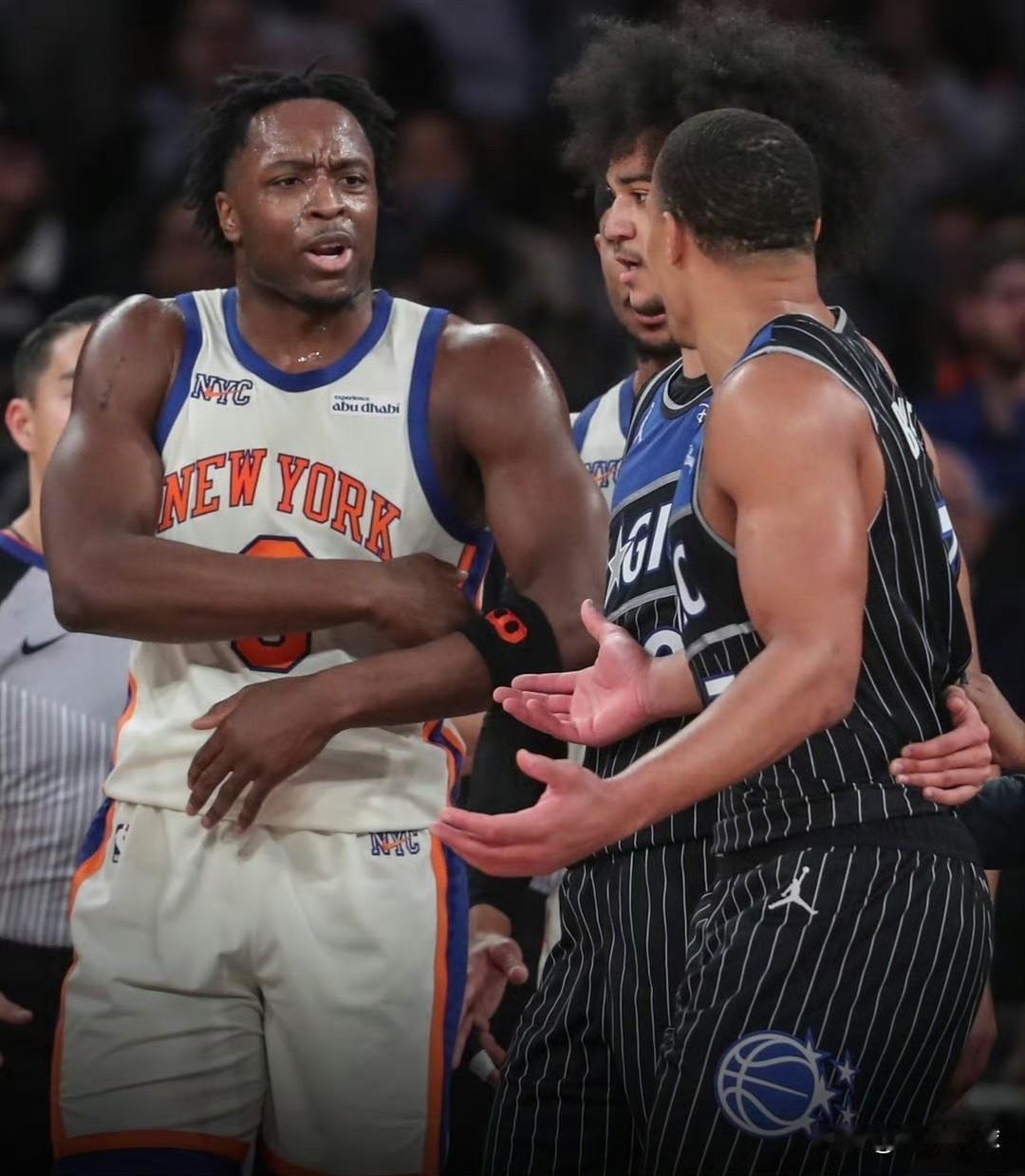 有好戏看了! NBA杯淘汰赛率先在东部开打,今天安排的两场比赛都已经结束,尼克斯队、魔术队分别战胜各自对手会师半决赛。 这样一来,半决赛可有好戏看了。两队在12月8日交手了一次,尼克斯队以106-100击败魔术队,比分差距并不大。本场比赛发生了一个小插曲,贝恩在一个回合用力将球砸向了阿努诺比,差点引发双方冲突,尼克斯队对这个回合意见很大。如今两队于半决赛相遇,新仇旧恨一起算,比赛肯定会非常紧张、激烈!