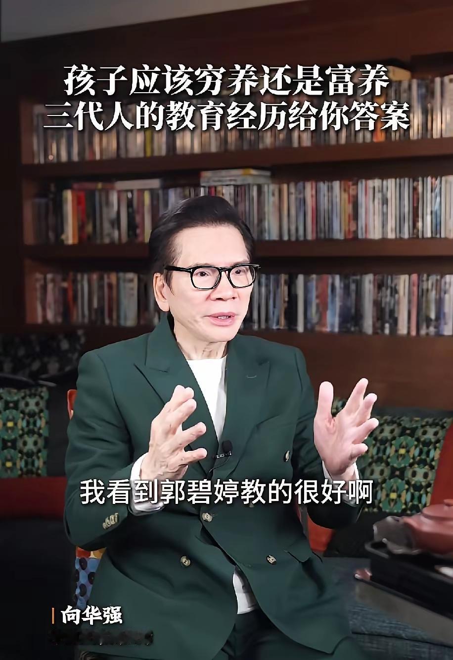 向华强一句“教育孩子很失败”,戳中多少父母的痛点。 创一代忙着拼事业,把孩子交给钱和佣人,结果向佑40多岁还在惹事,一事无成;反观郭碧婷带娃,每天只给孩子看五分钟手机,小家伙乖乖遵守,不用打不用骂——这对比,哪是夸儿媳,分明是在说“教育孩子,钱真不是万能的”。 谁都知道向家不缺钱。当年向华强夫妇忙着闯江湖,给孩子最好的物质,却没给最该给的陪伴。孩子闯祸了用钱摆平,想要什么随手就买,看似宠溺,实则是把孩子推向了“没规矩”的坑。向佑后来的种种,说白了就是被“钱能解决一切”的念头惯坏了。 可郭碧婷偏不按这套来。她带娃不拼奢华,拼的是“规矩”。五分钟手机时间,说一不二;出门教孩子打招呼,自己先弯腰示范;陪孩子读绘本,放下手机专心互动。这些事看着小,却是在给孩子扎“根”——知道什么该做,什么不能做,比坐拥多少家产都管用。 向华强说“觉得好幸福”,这幸福里藏着悔意。当年以为赚够钱就是对孩子好,老了才明白,孩子走得正不正,跟存折上的数字没多大关系。向佐能慢慢走上正轨,一半是自己醒了,另一半是郭碧婷带来的“烟火气”——不是豪门里的规矩森严,是普通人家里的“好好说话,认真做事”。 这事儿给所有父母提了个醒:教育孩子哪有什么捷径?无非是肯花时间,肯立规矩,肯放下手机听孩子说句话。你在酒桌上谈生意时,孩子可能正在学坏;你用名牌哄孩子开心时,不如教他“想要什么得自己挣”。 向家的例子摆在这里:钱能买豪宅买名车,却买不来孩子骨子里的懂事。郭碧婷的厉害,不在于多会带娃,而在于她懂一个理——教育孩子,拼的是父母的耐心和用心,不是银行卡的额度。 说到底,孩子就像棵小树苗,你天天浇水施肥,它才能长直;你光想着给它盖华丽的笼子,不管根歪没歪,迟早要出问题。这道理,向华强悟得晚了点,但对咱们来说,什么时候明白都不迟。