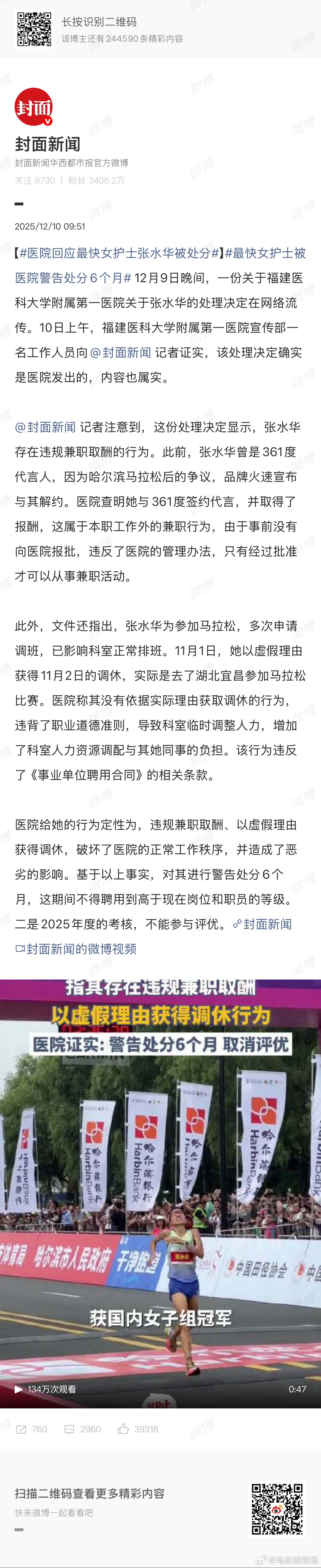 医院回应最快女护士张水华被处分这处分挺好,也合理合规!爱好、兼职都没问题,但不能